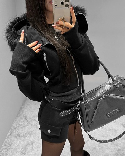 - [당일배송] [블랙] 모넷 퍼 하프 자켓