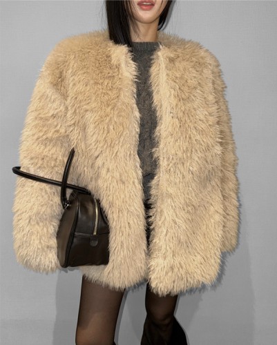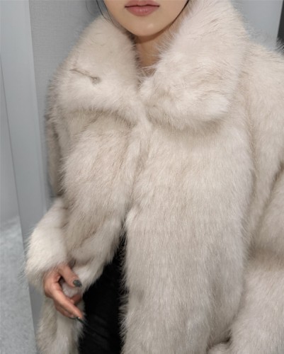- [당일배송] [베이지] 레오파드 카라 퍼 코트