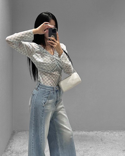 - [당일배송] 셰드 퍼 오프숄더 티셔츠