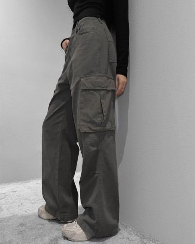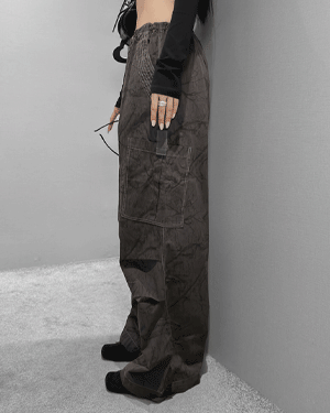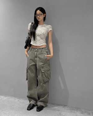 워시드 카고 와이드 팬츠 -