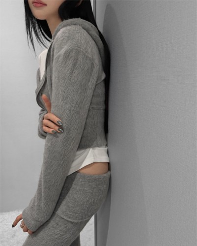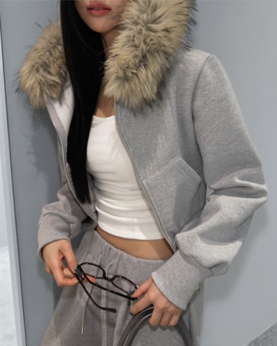코지 기모 크롭 후드 집업 -