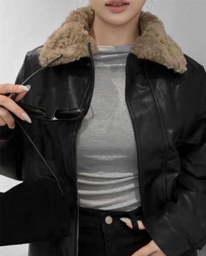 오버핏 레더 후드 점퍼 - 85,000
