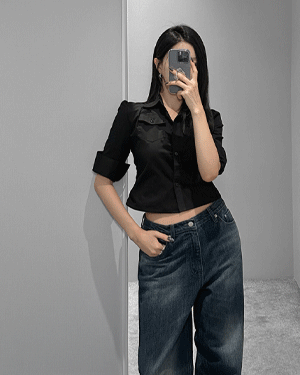 시드 절개 크롭 티셔츠 -