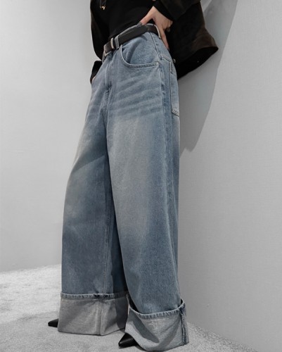 - [당일배송] [중청 M] 딥 롤업 와이드 데님팬츠