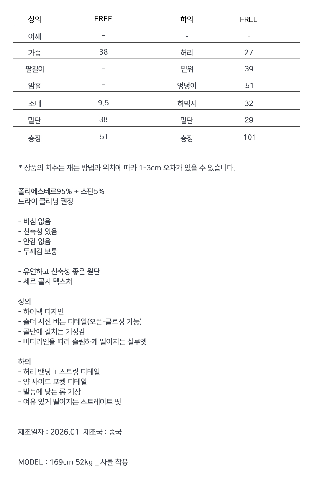 ※ 상품사이즈 치수는 재는 방법과 위치에 따라 1~3cm 오차가 있을 수 있습니다.