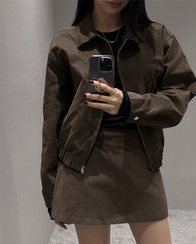 [당일배송] [베이지] 스웨이드 크롭 자켓