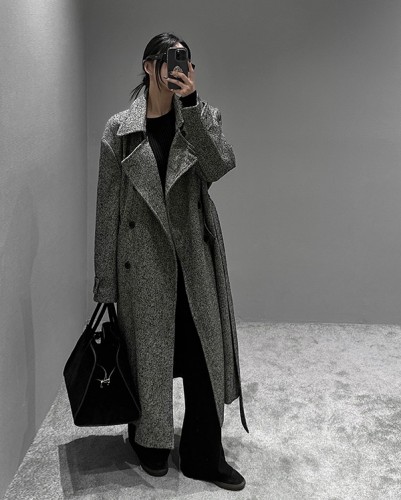 울 헤링본 트렌치 코트
