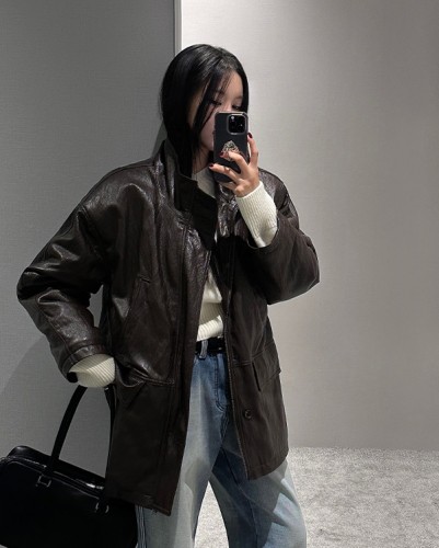 크롭 바이커 레더 자켓