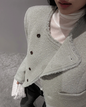울 트위드 하이넥 크롭 자켓