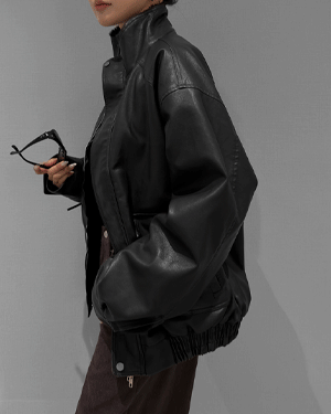 - [베스트 리오더] 오버핏 레더 후드 점퍼