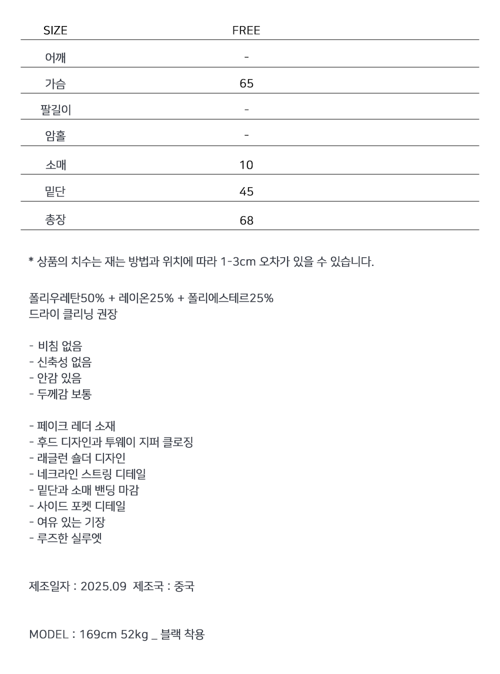 ※ 상품사이즈 치수는 재는 방법과 위치에 따라 1~3cm 오차가 있을 수 있습니다.