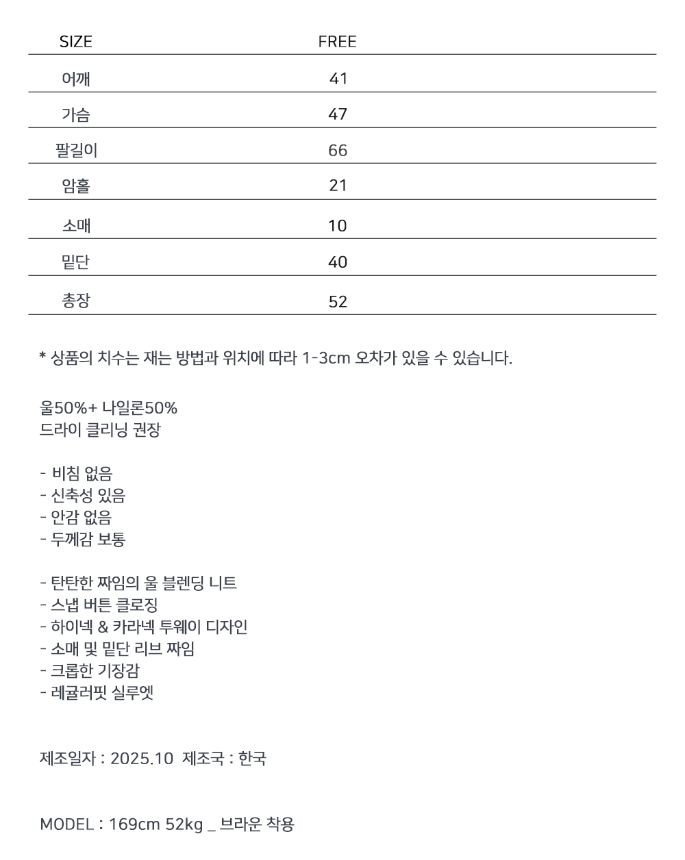울 블렌딩 원사로 포근한 터치감을 주며, 하이넥과 카라넥 두 가지로 연출 가능한 스냅버튼 가디건입니다. 적당한 여유의 레귤러핏과 안정적인 시보리 마감으로 실루엣이 깔끔하게 정돈됩니다.