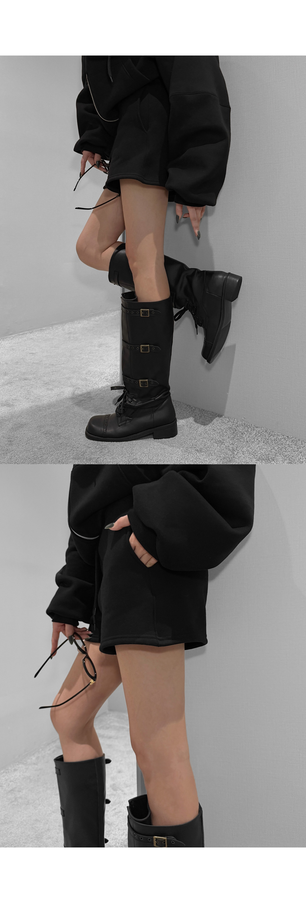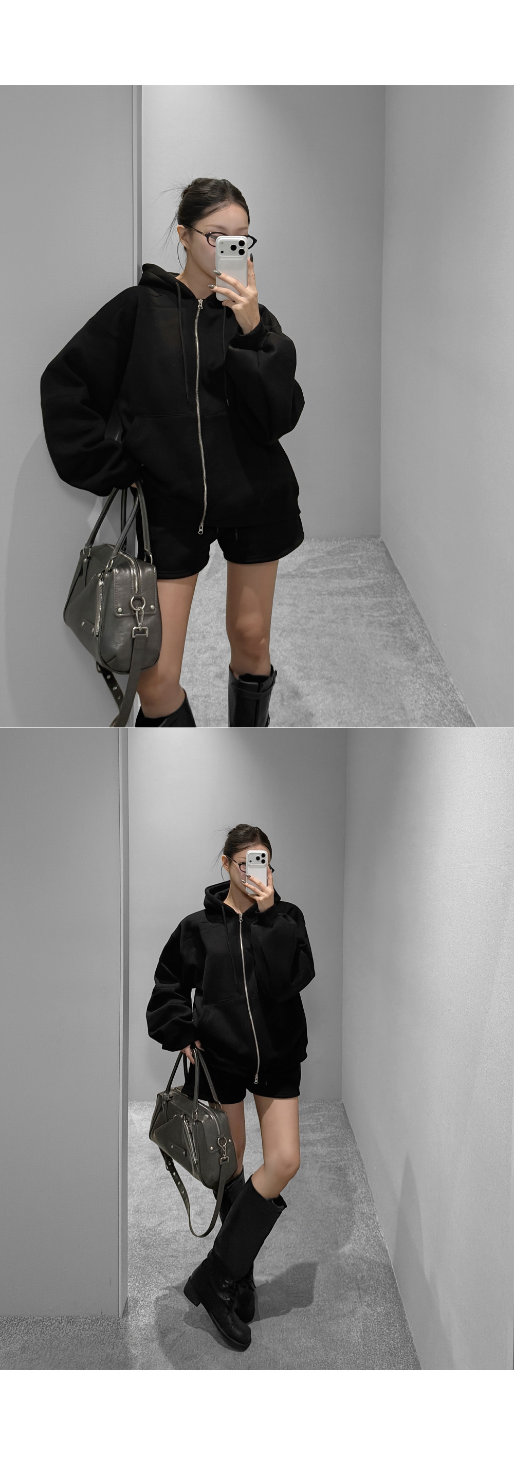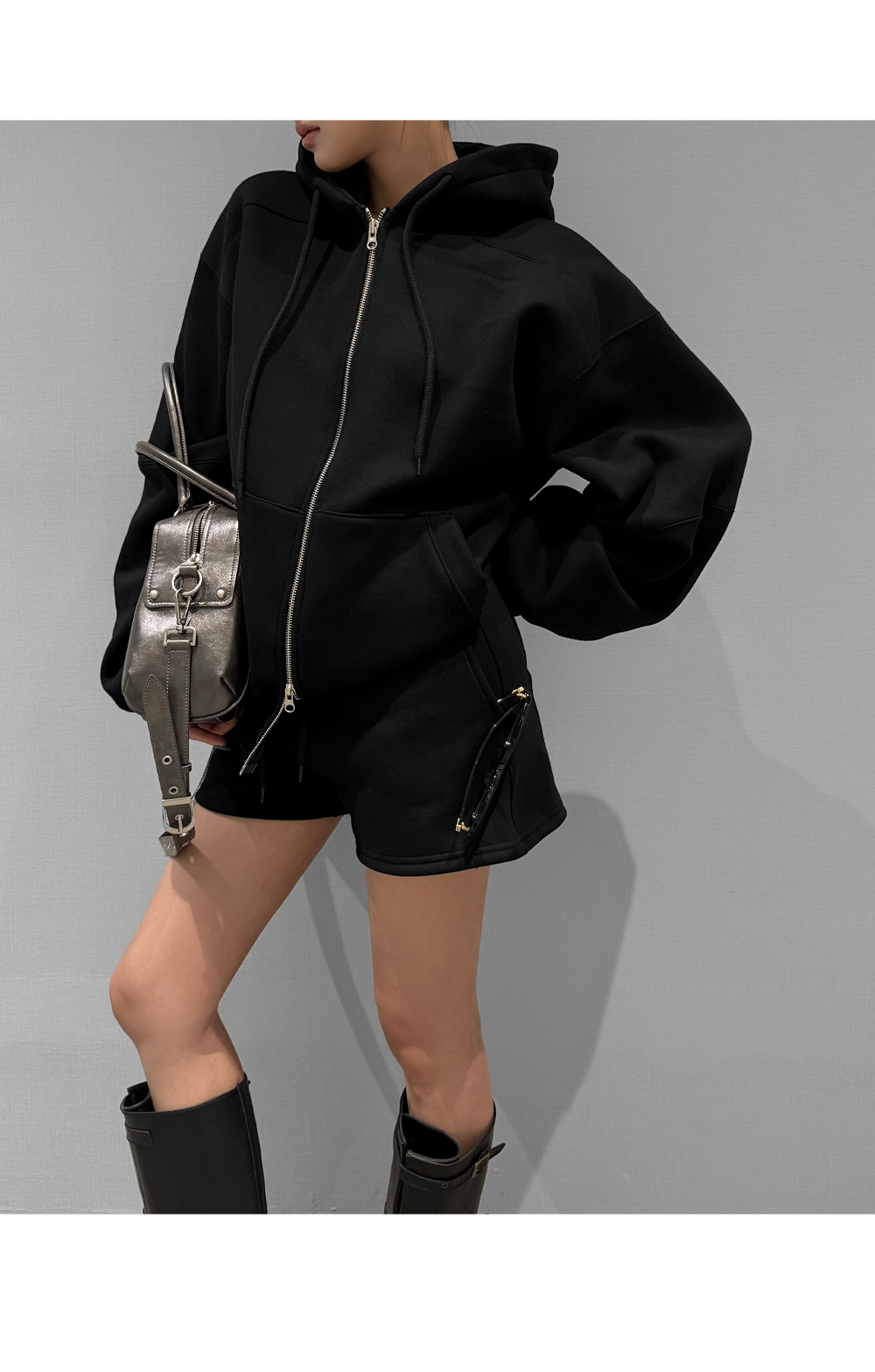 하나만으로 겨울 데일리 무드를 완성해주는 기모 후드집업+쇼츠 세트입니다. 포근한 기모 안감이 편안한 보온력을 더해주며, 오버 핏 후드집업과 미니 쇼츠의 조합으로 데일리부터 스트릿 무드까지 폭넓게 연출됩니다.