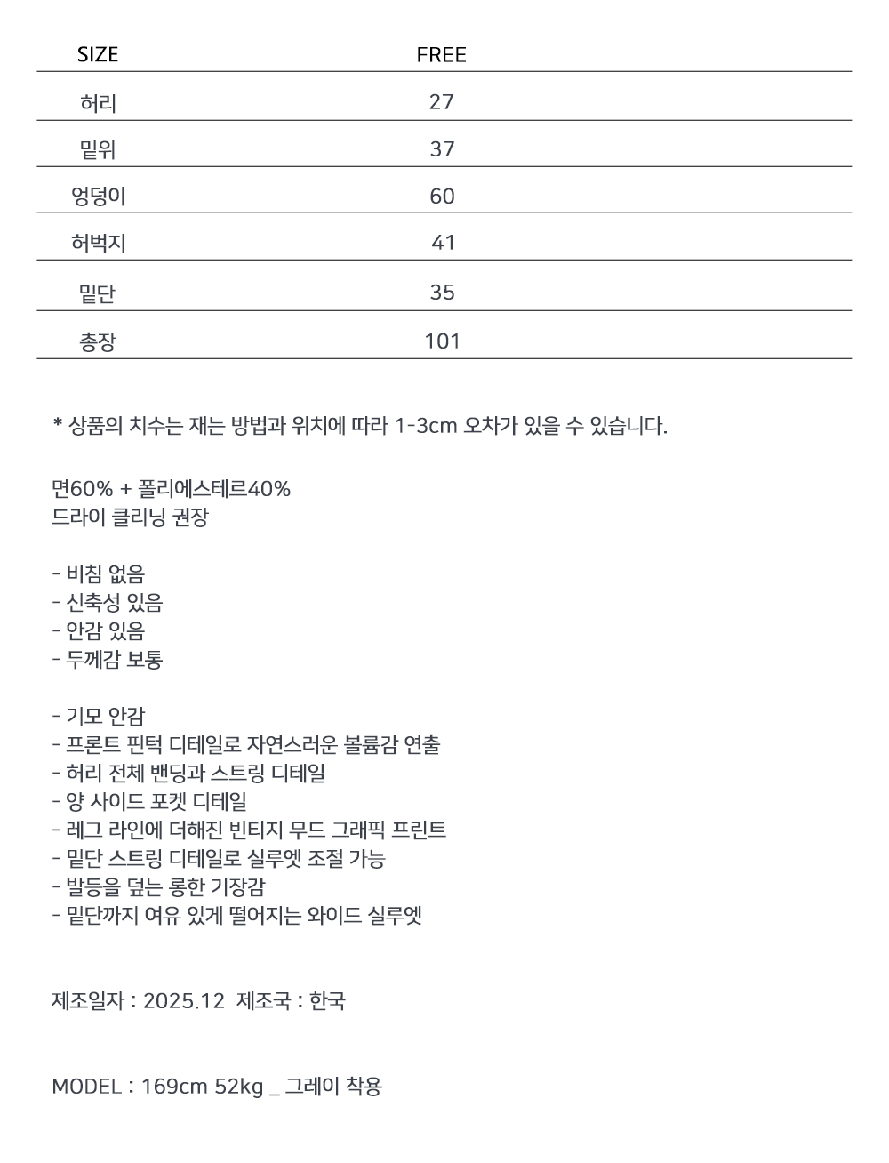 ※ 상품사이즈 치수는 재는 방법과 위치에 따라 1~3cm 오차가 있을 수 있습니다.