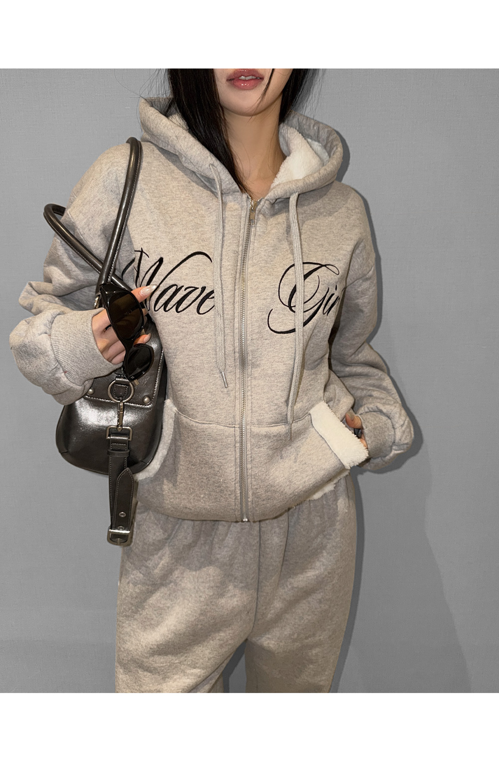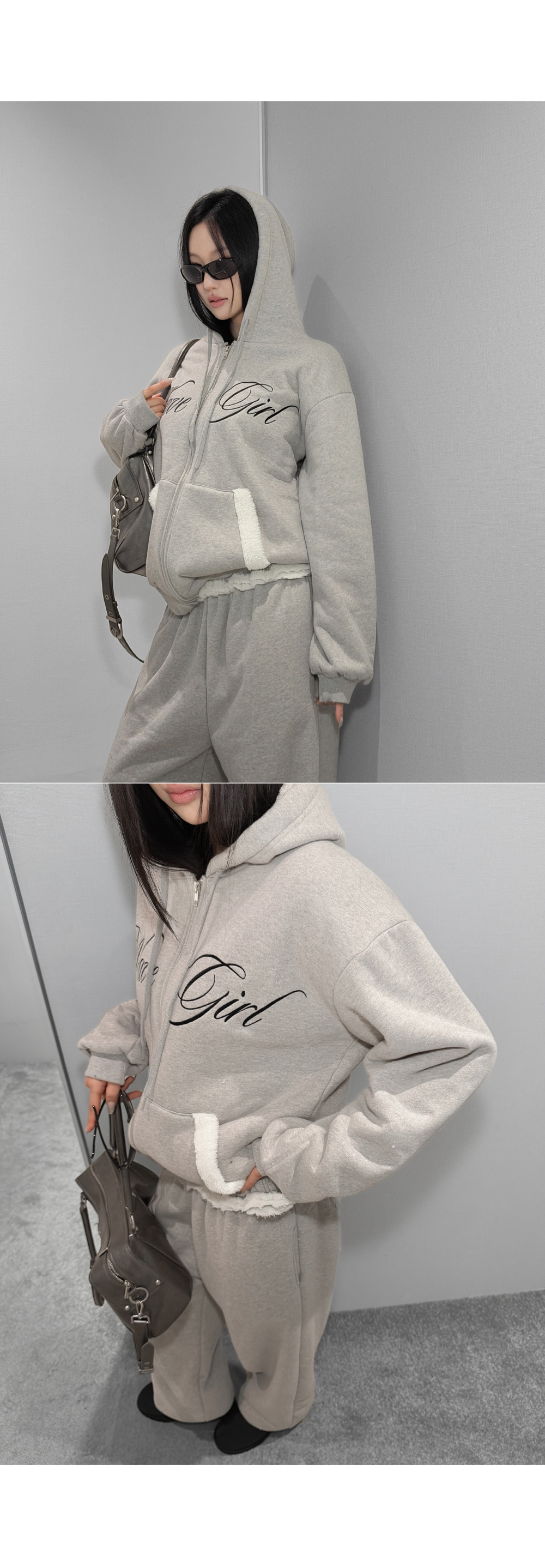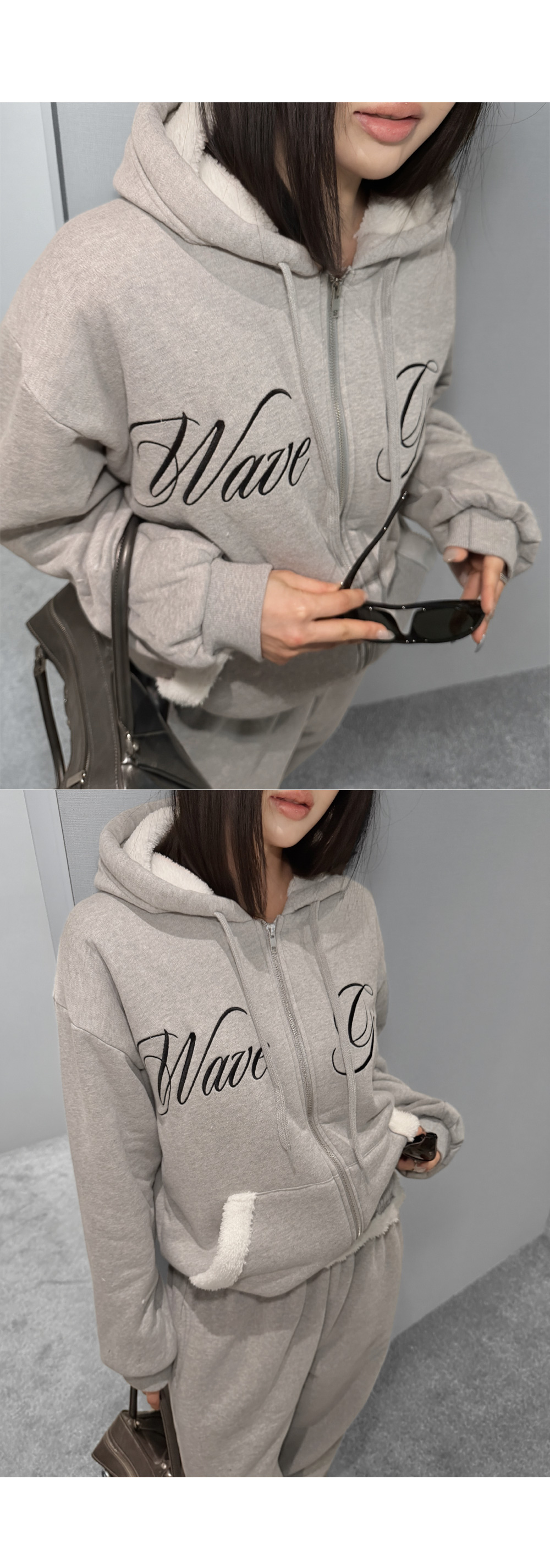 SET-UP > [당일배송] [그레이] [덤블 안감] 시어링 덤블 후드 집업