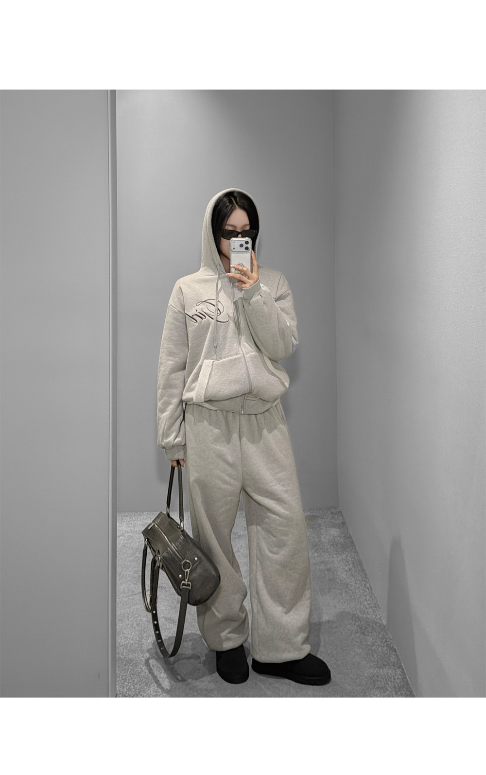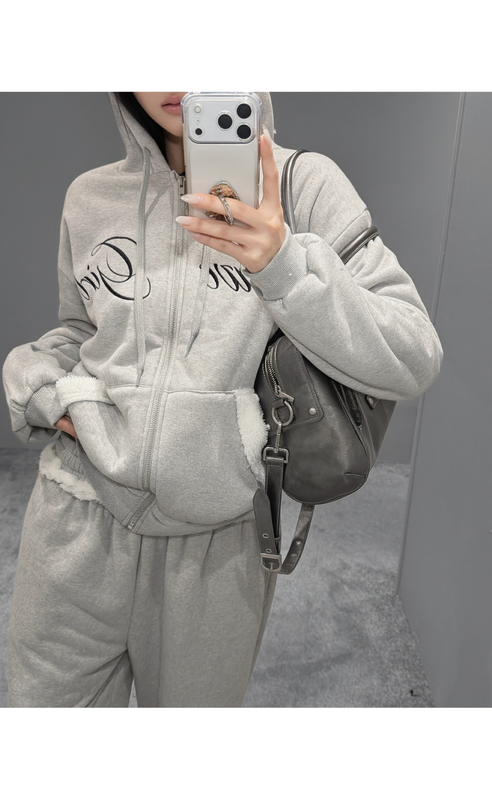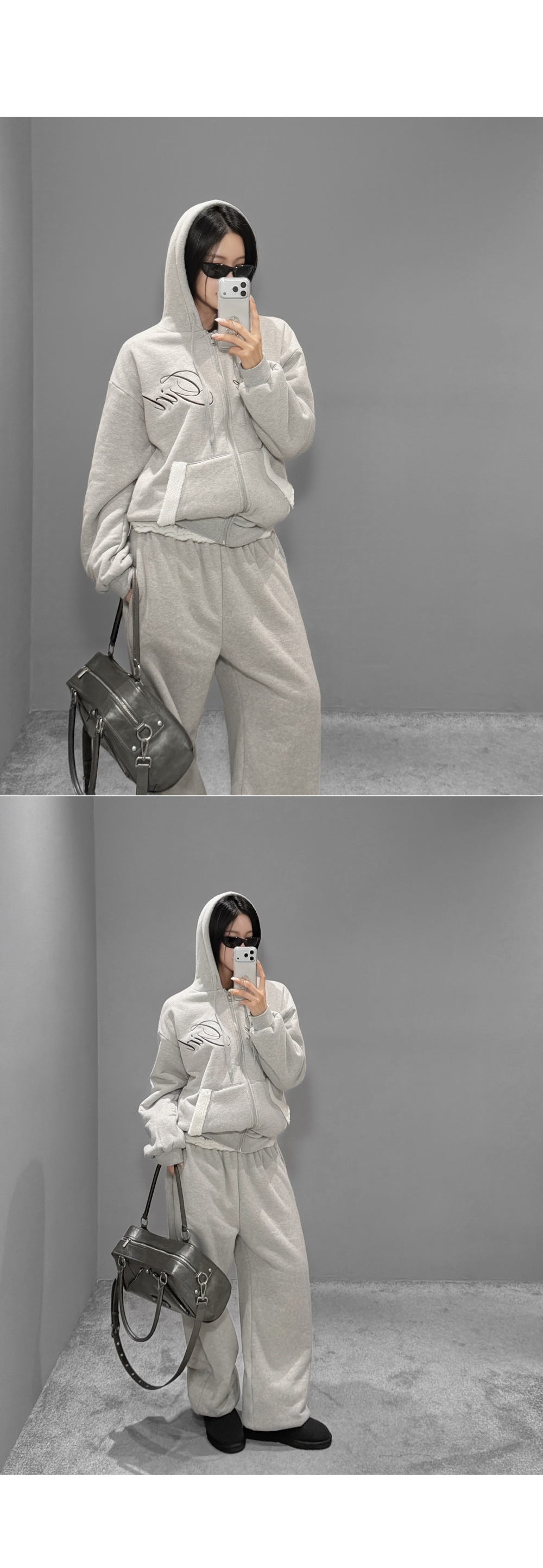 SET-UP > [당일배송] [그레이] [덤블 안감] 시어링 덤블 후드 집업