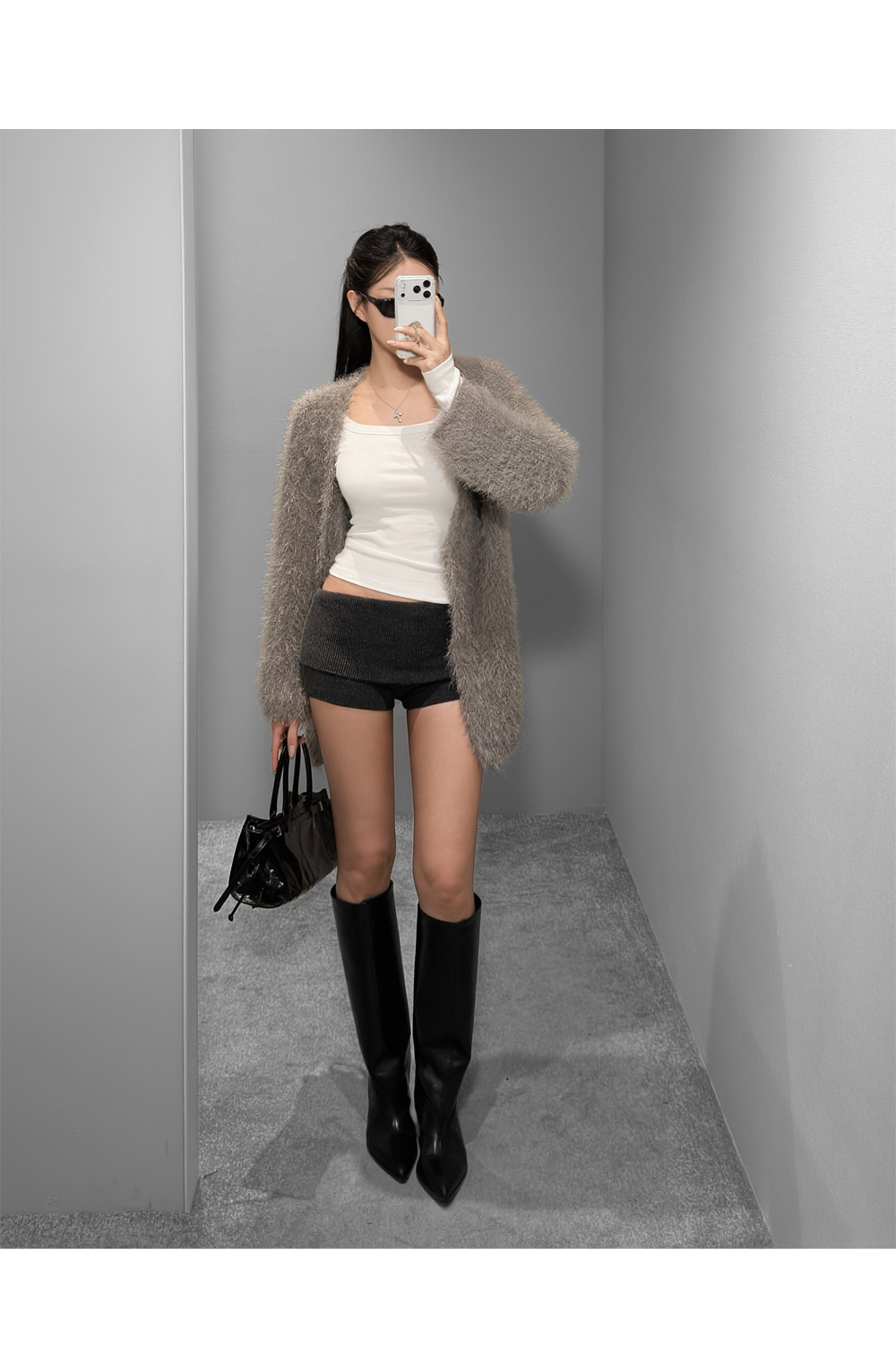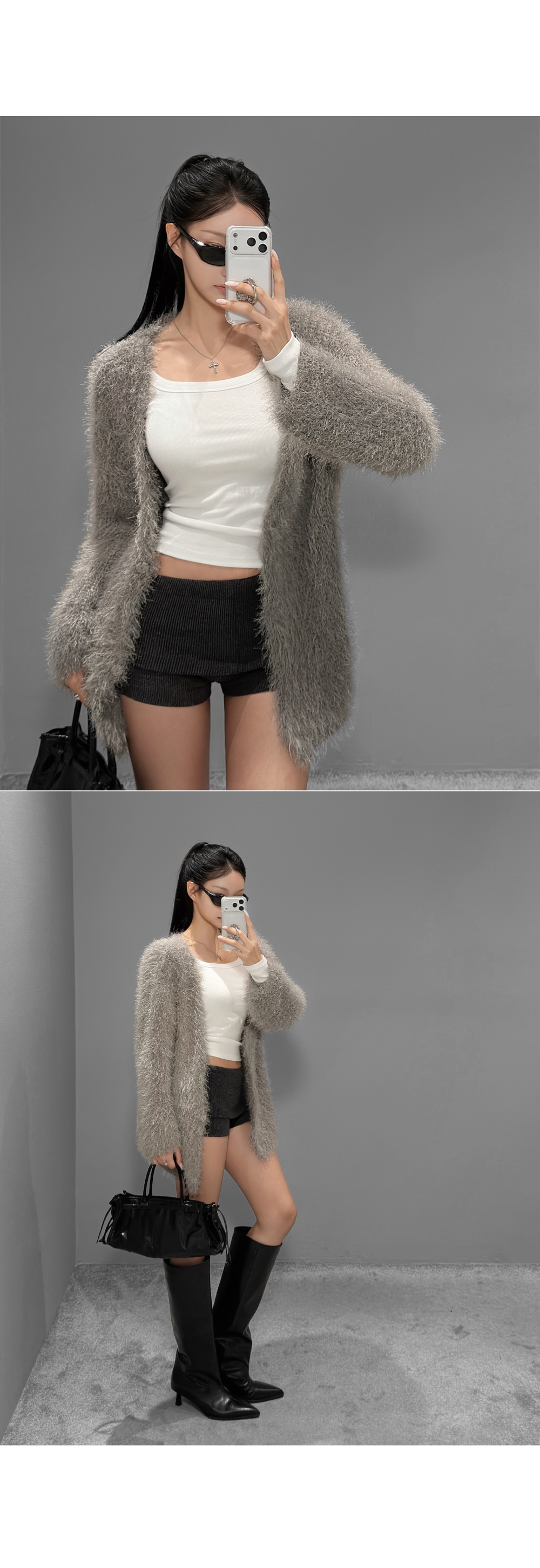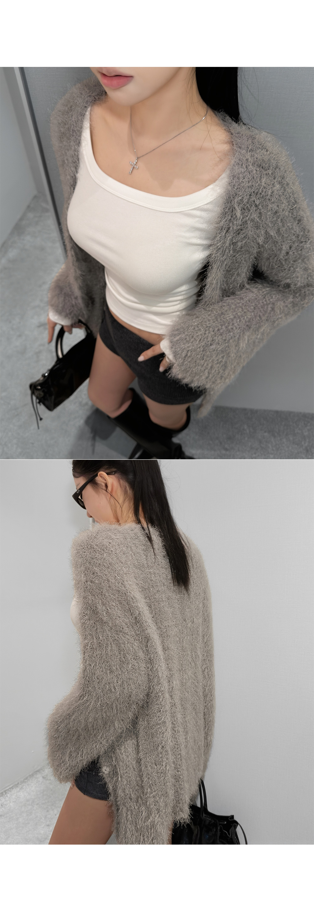 [당일배송] [화이트] 소프트 페더 헤어리 가디건