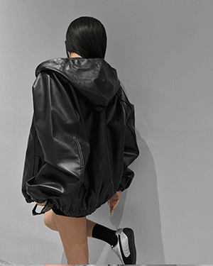 - [베스트 리오더] 오버핏 레더 후드 점퍼
