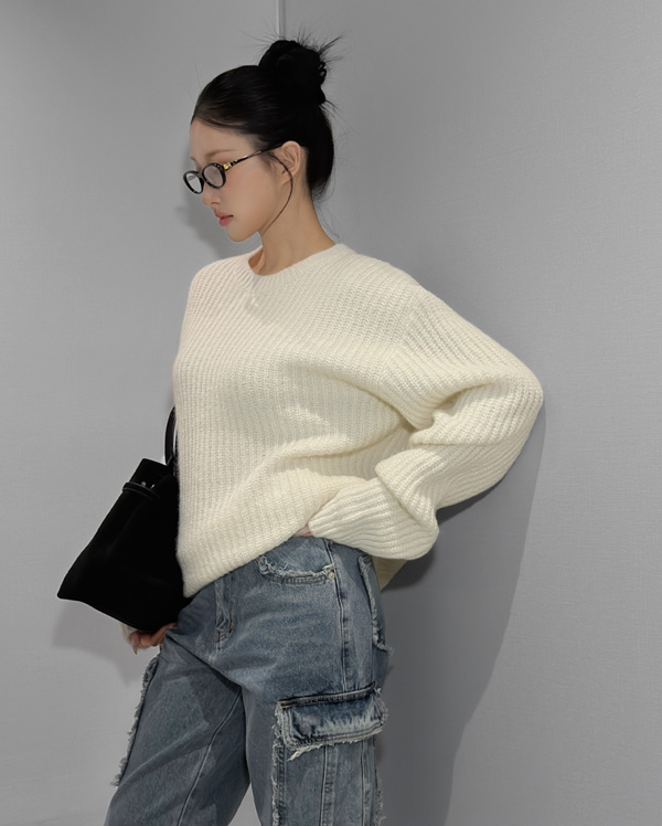 - [당일배송] [소라] 로우 무드 단가라 오버핏 니트