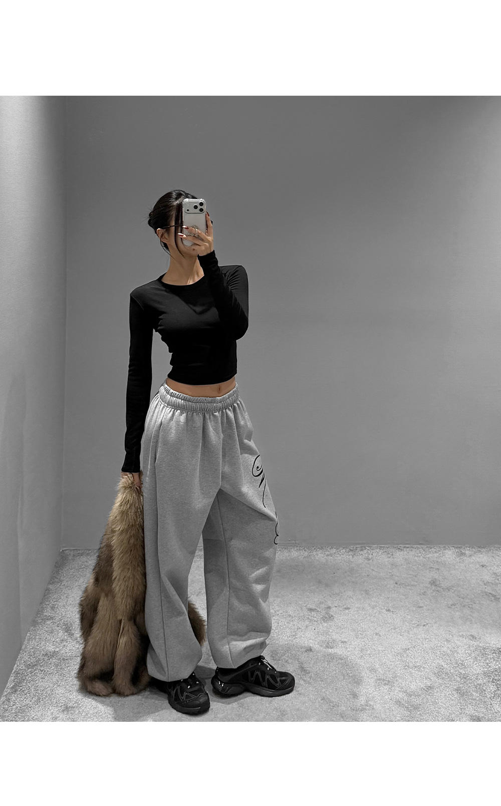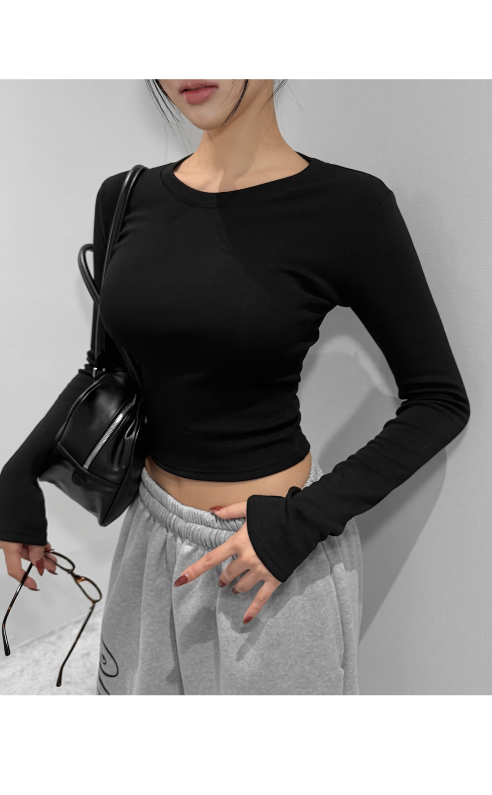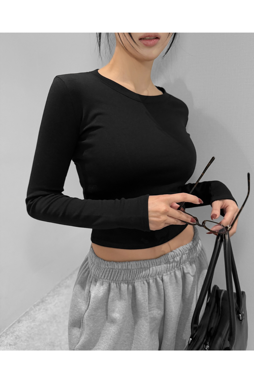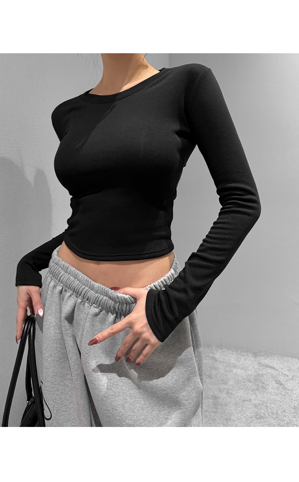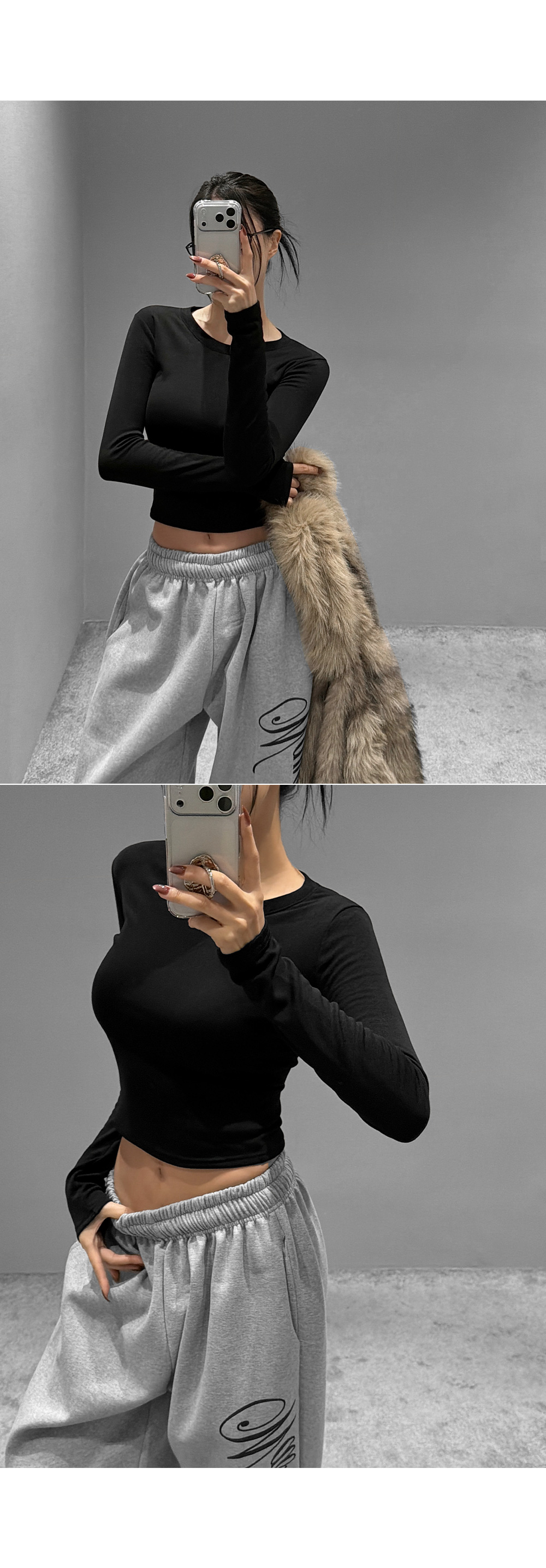 기모 라운드 크롭 티셔츠