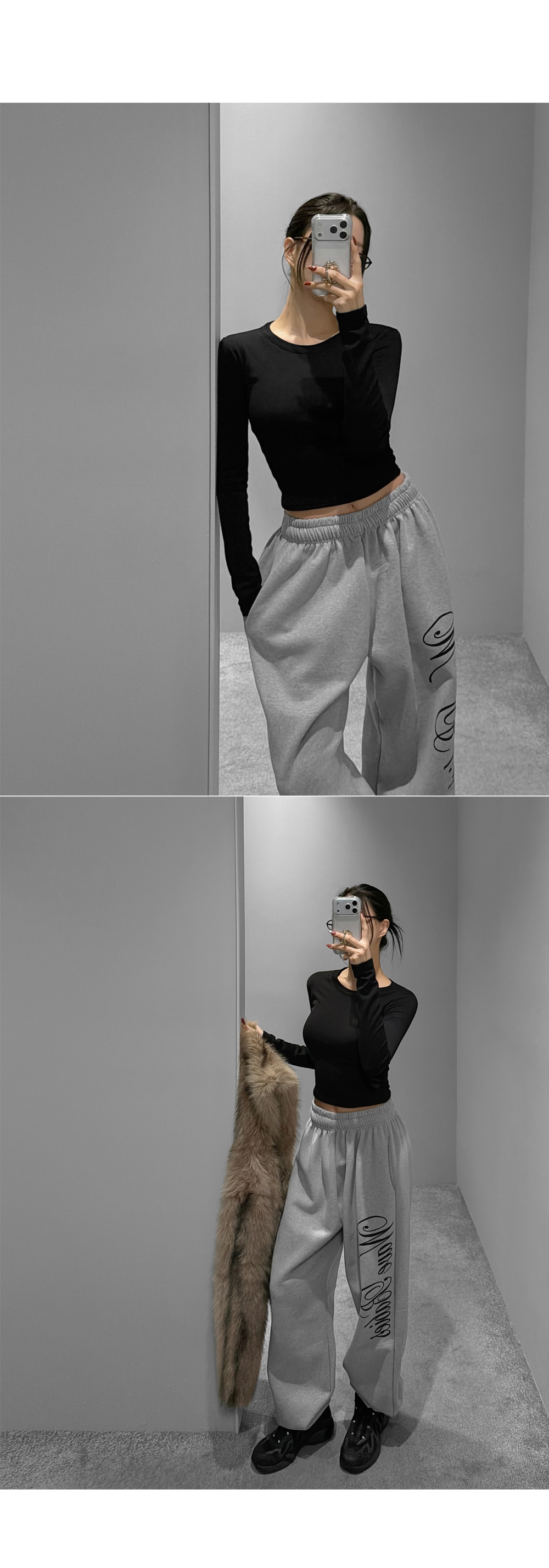 따뜻한 기모 안감의 크롭 티셔츠입니다. 라운드 네크라인으로 웨어러블하게 즐길 수 있는 기본 티셔츠 아이템입니다.