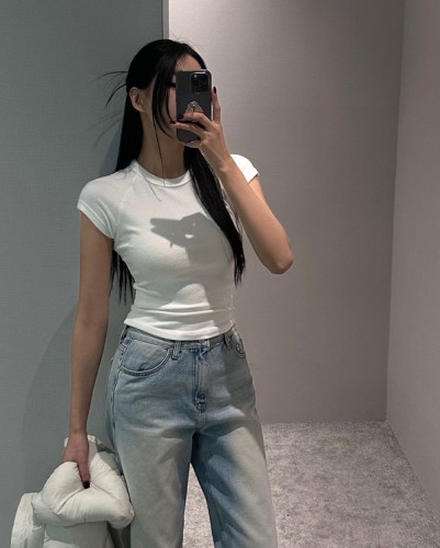[당일배송] [MADE] 기모 라운드 크롭 티셔츠
