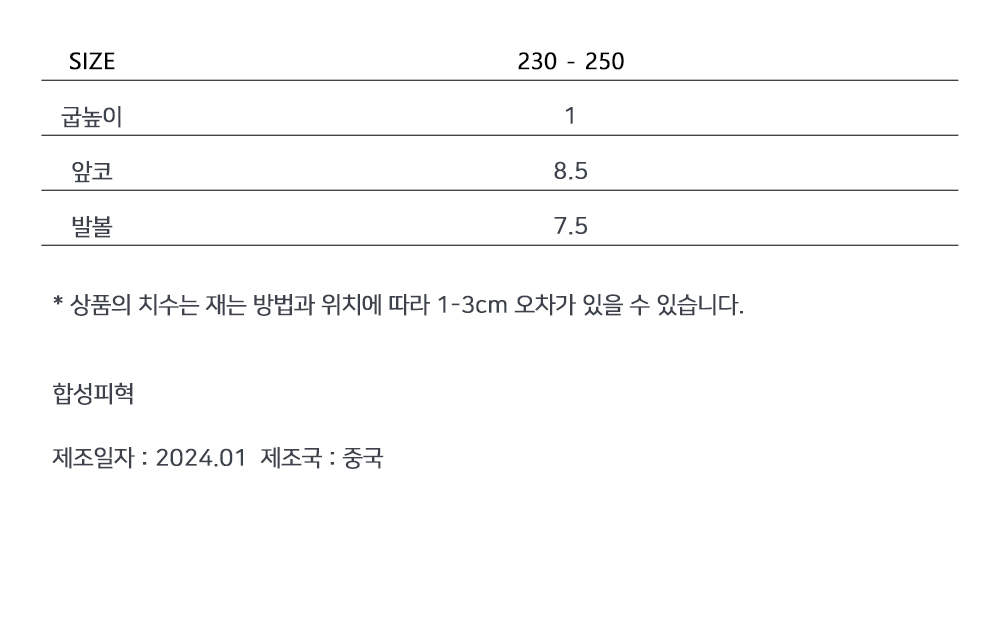ADD TO CART 관심상품 BUY NOW COLOR 베이지(스웨이드) 블랙(PU) 블랙(스웨이드) 그레이(스웨이드) SIZE 230 235 240 245 250 동의 SALE 교환/반품 불가 총 상품 금액 0 원 ADD TO CART 관심상품 BUY NOW SOLD OUT