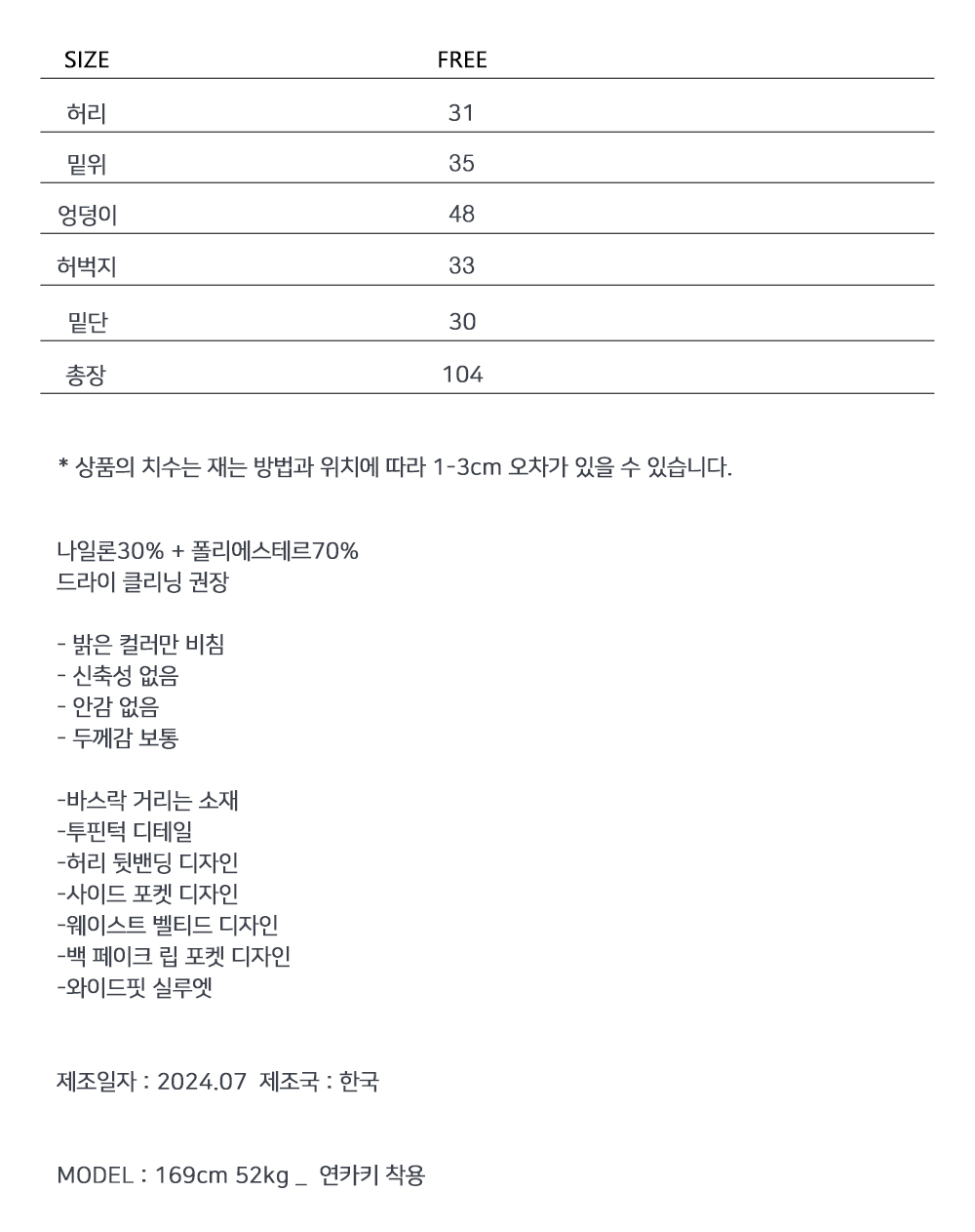시원한 나일론소재의 팬츠입니다. 딘 스모크 셔링탑과 셋업으로 즐기기 좋으며 뒷밴딩으로 편안한 착용감을 선사해 드립니다. 프론트 투핀턱 디테일로 멋스러움을 더했습니다.