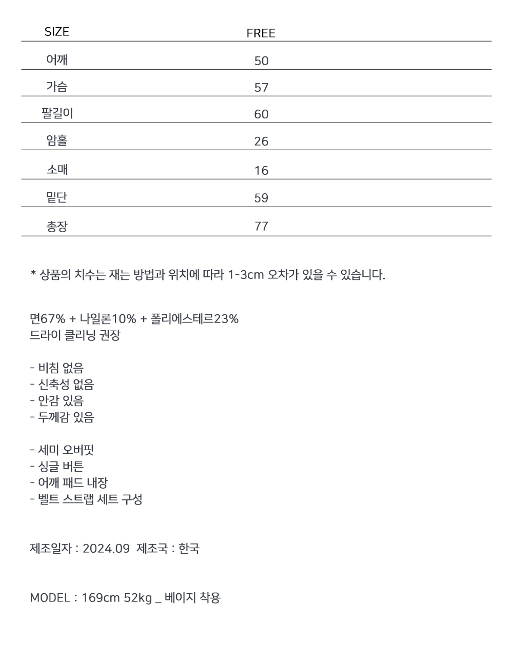 세미 오버핏의 하프 자켓입니다. 클래식한 디자인으로 이번 F/W 시즌 무심한듯 멋스럽게 즐길 수 있는 아우터입니다.