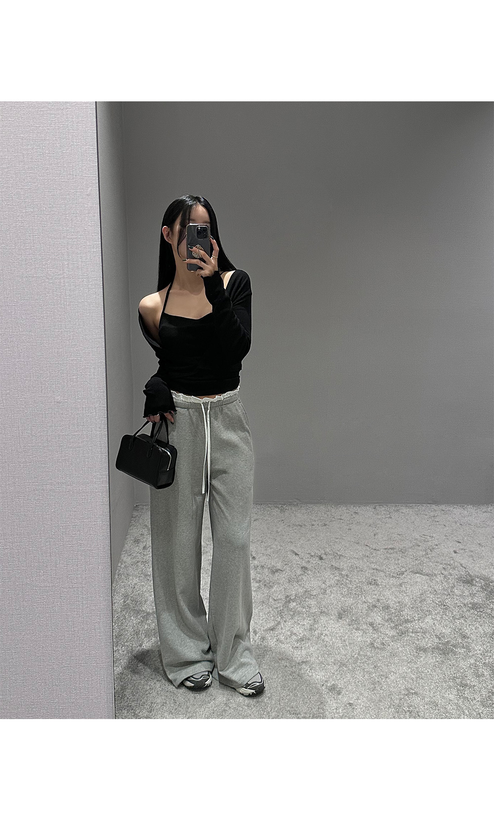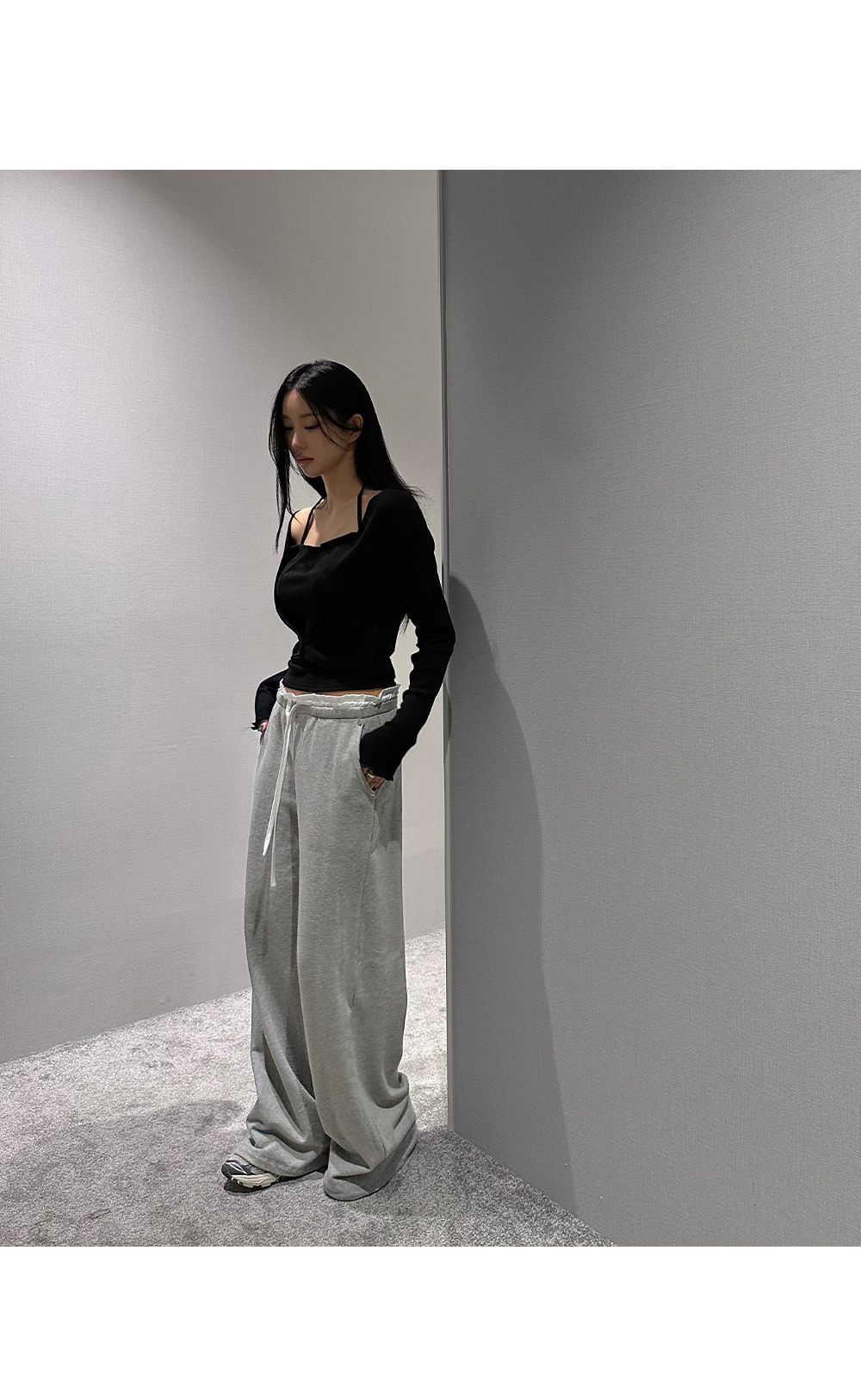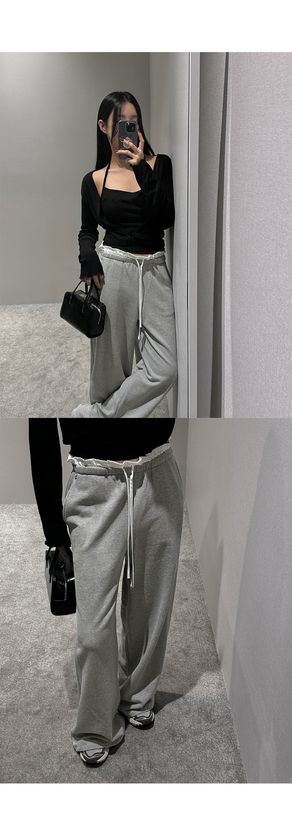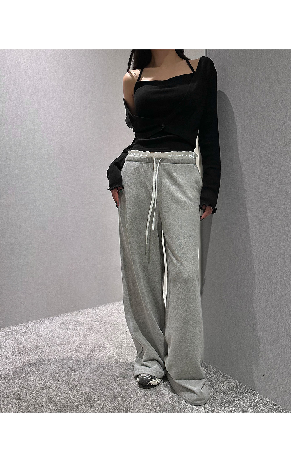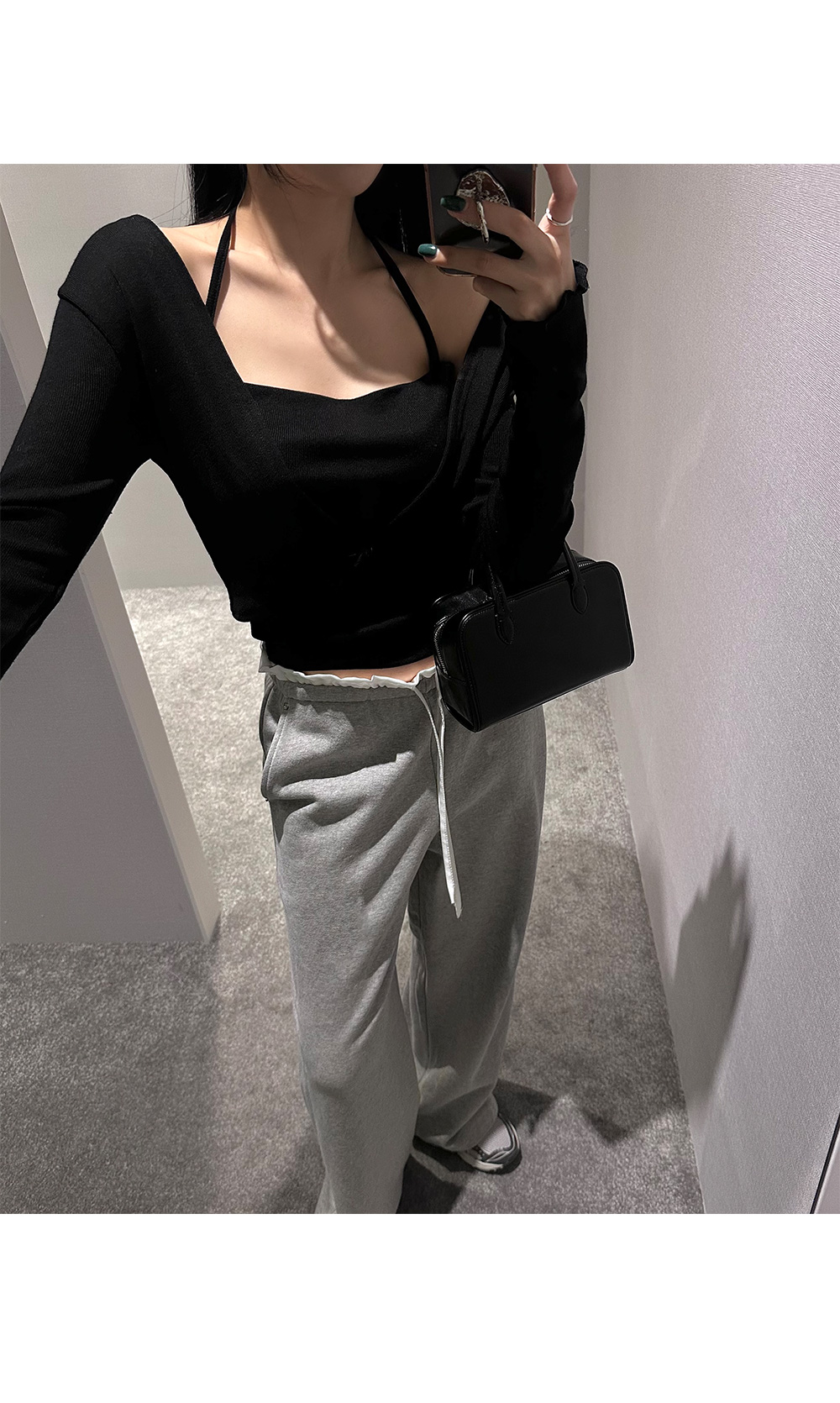 홀터넥 나시 가디건세트입니다. 드레이프 넥 디자인으로 페미닌한 무드를 더해줍니다.