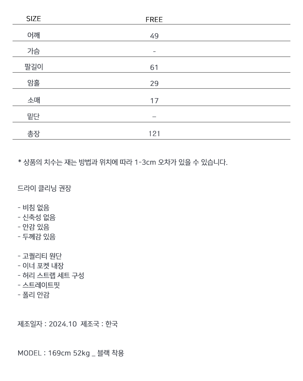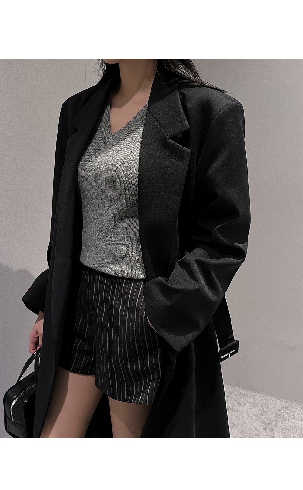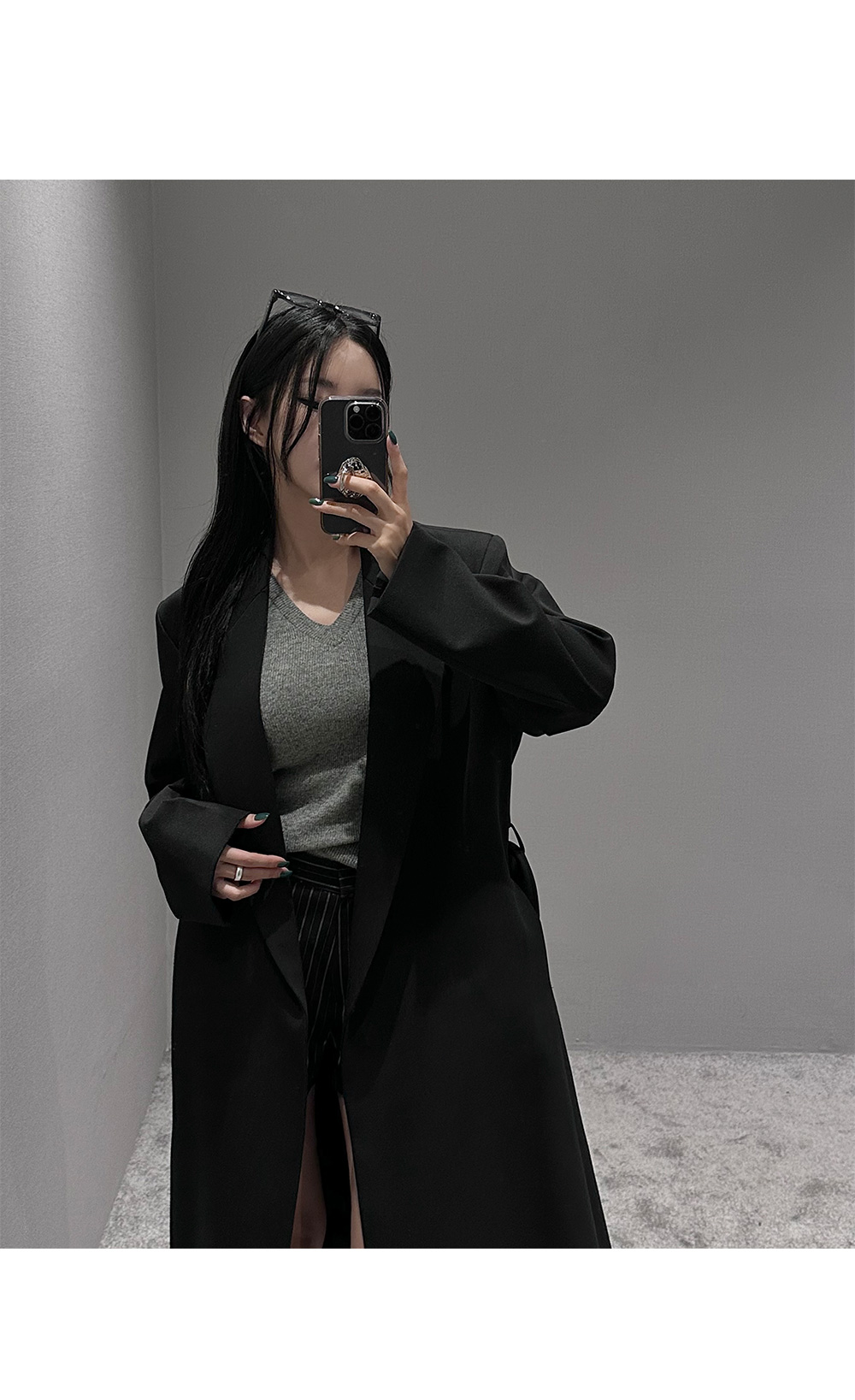 스트레이트핏이 매력적인 롱 자켓입니다. 어깨 속패드가 내장되어 숄더 라인을 잡아주며 퀄리티 높은 탄탄한 원단으로 제작되었습니다.