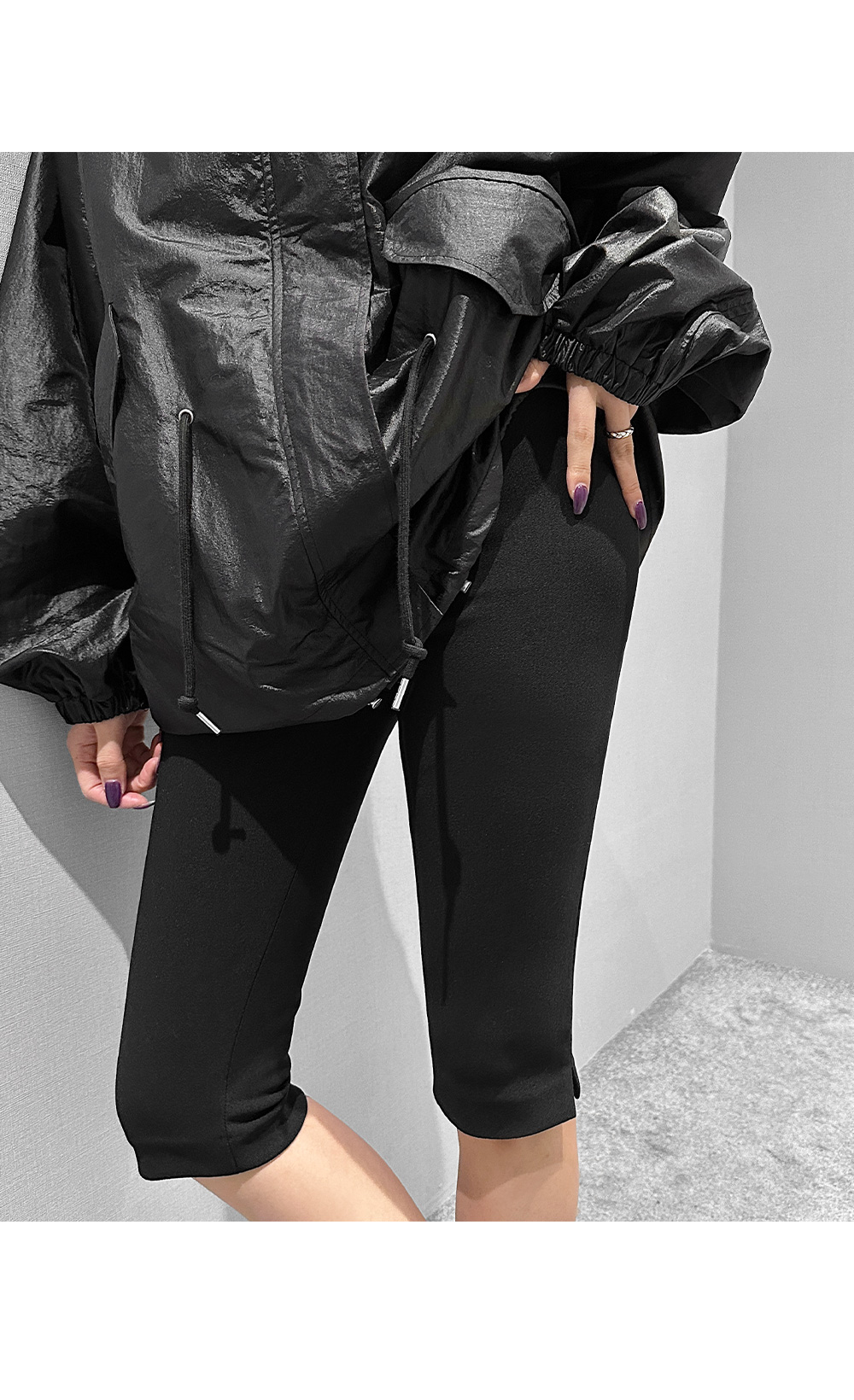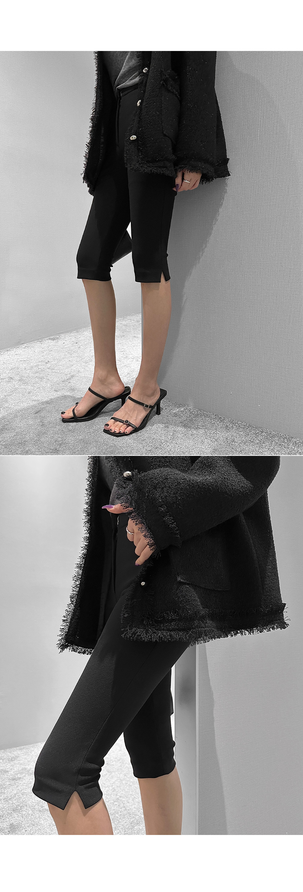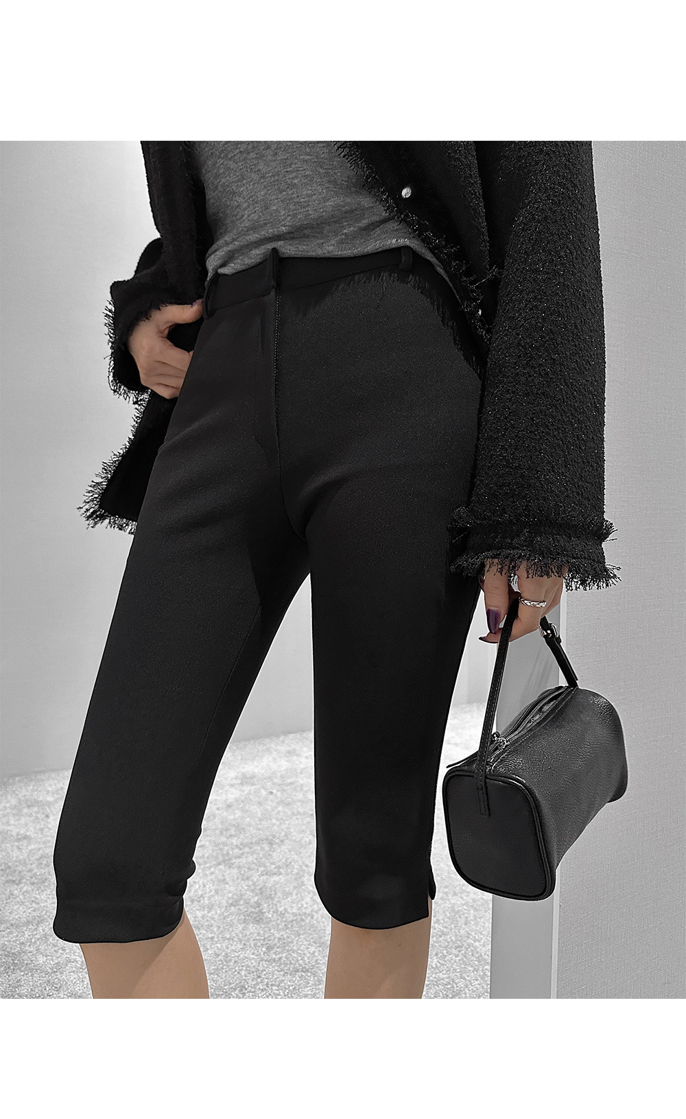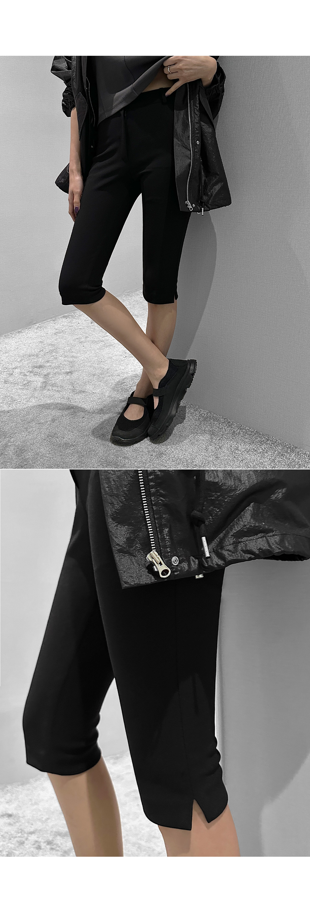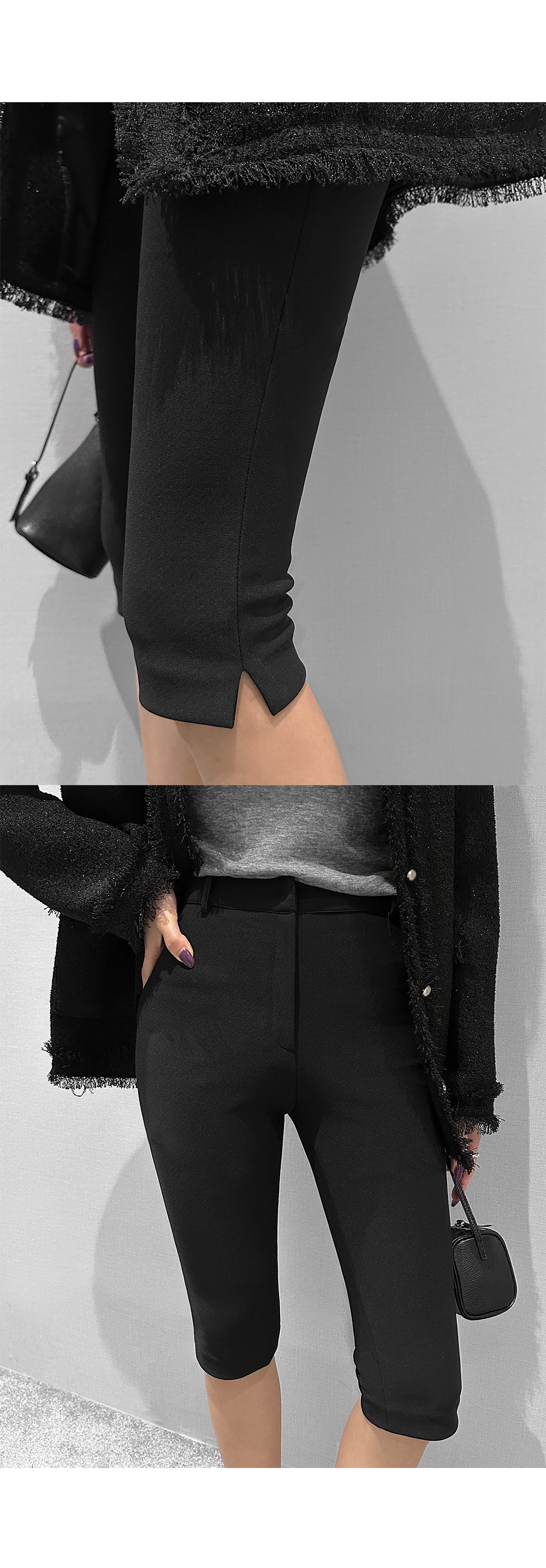 6부 기장의 바이커 슬릿 팬츠입니다. 퀄리티 높은 원단에 스판 블렌딩을 더했습니다.