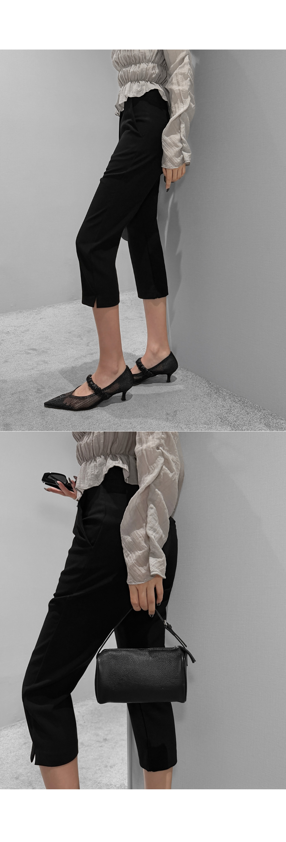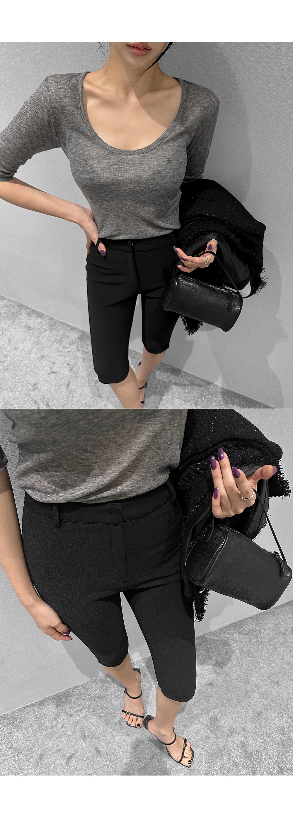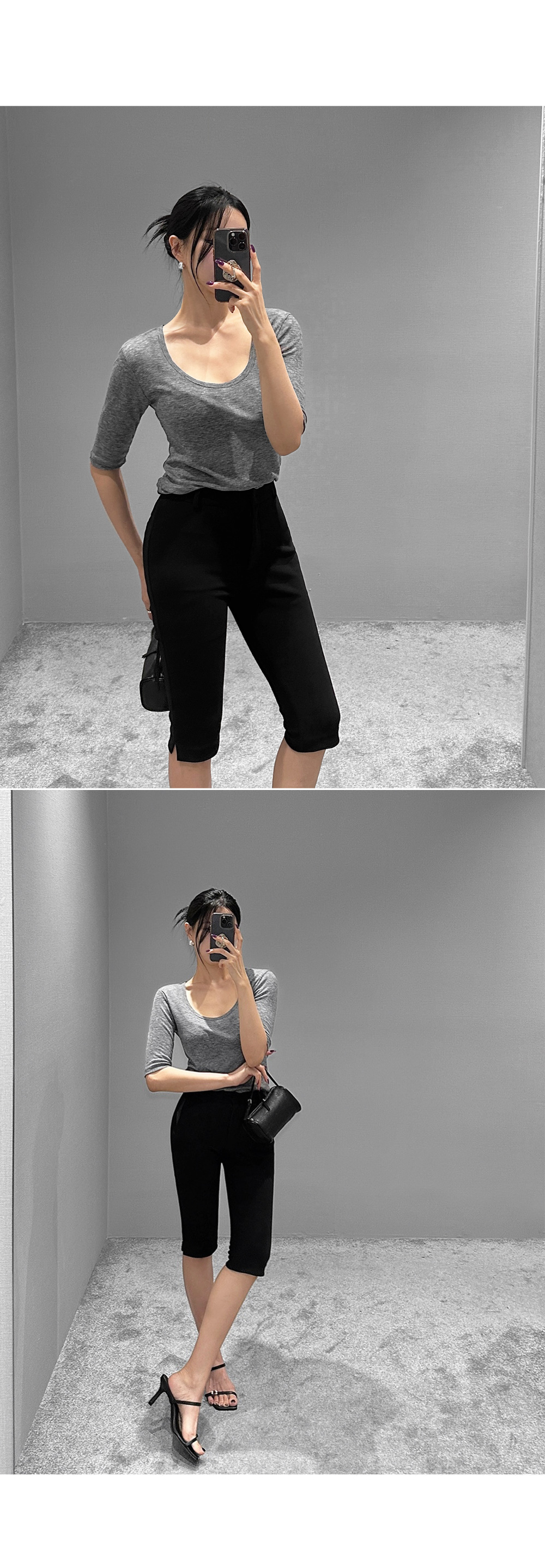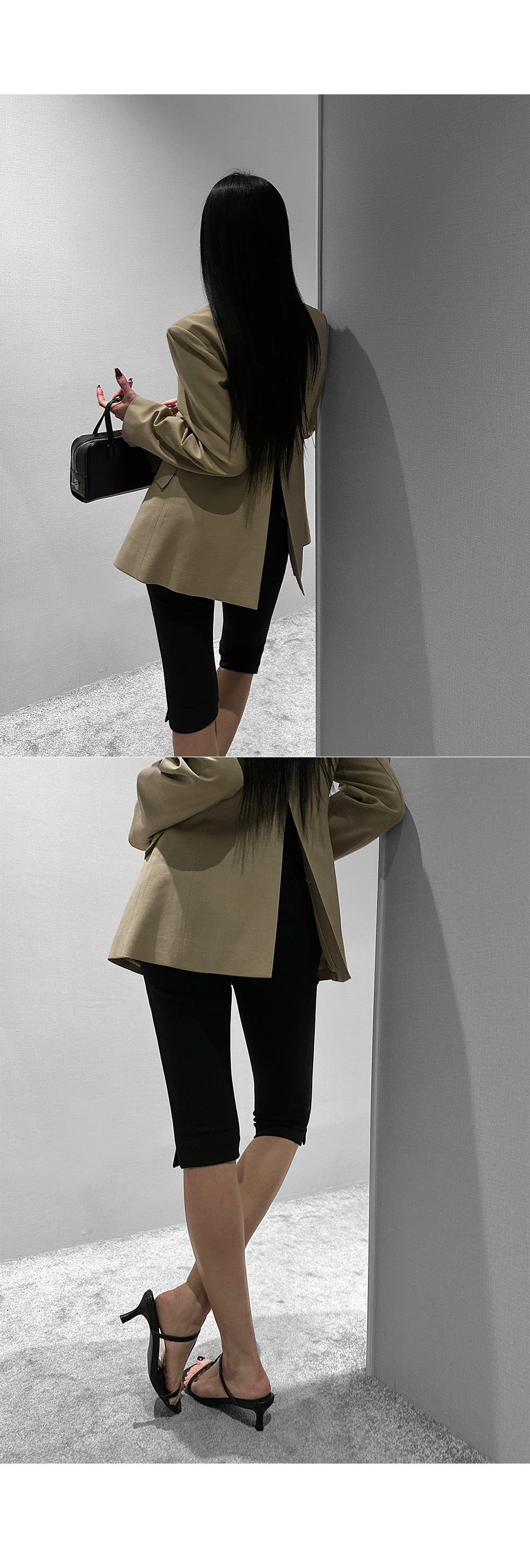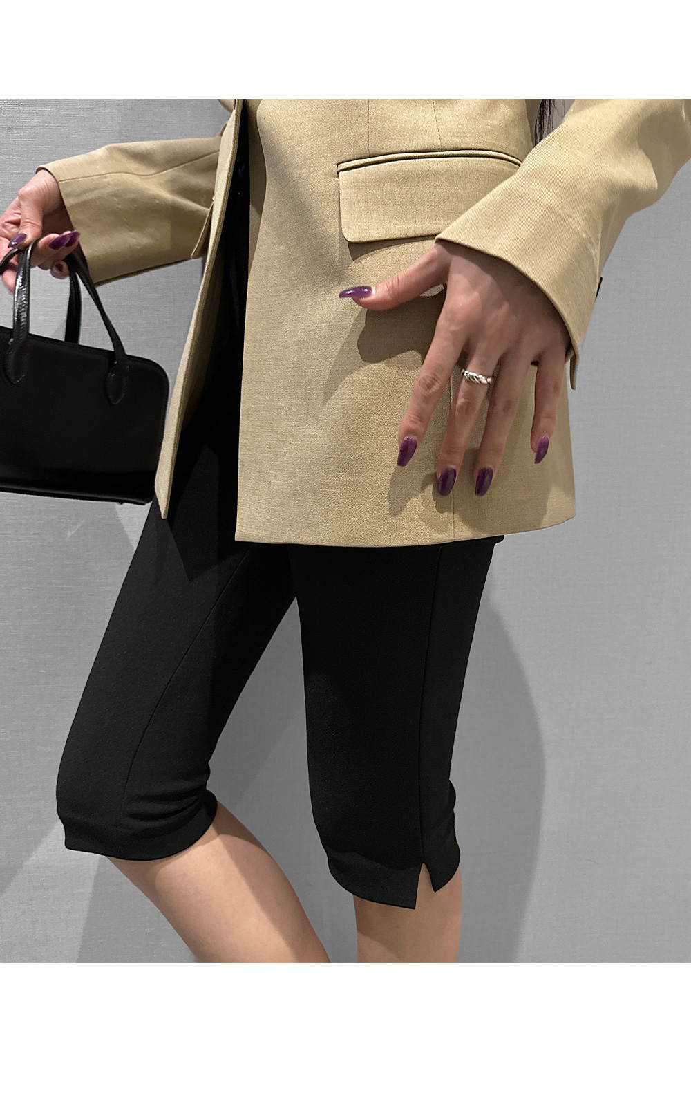 6부 기장의 바이커 슬릿 팬츠입니다. 퀄리티 높은 원단에 스판 블렌딩을 더했습니다.