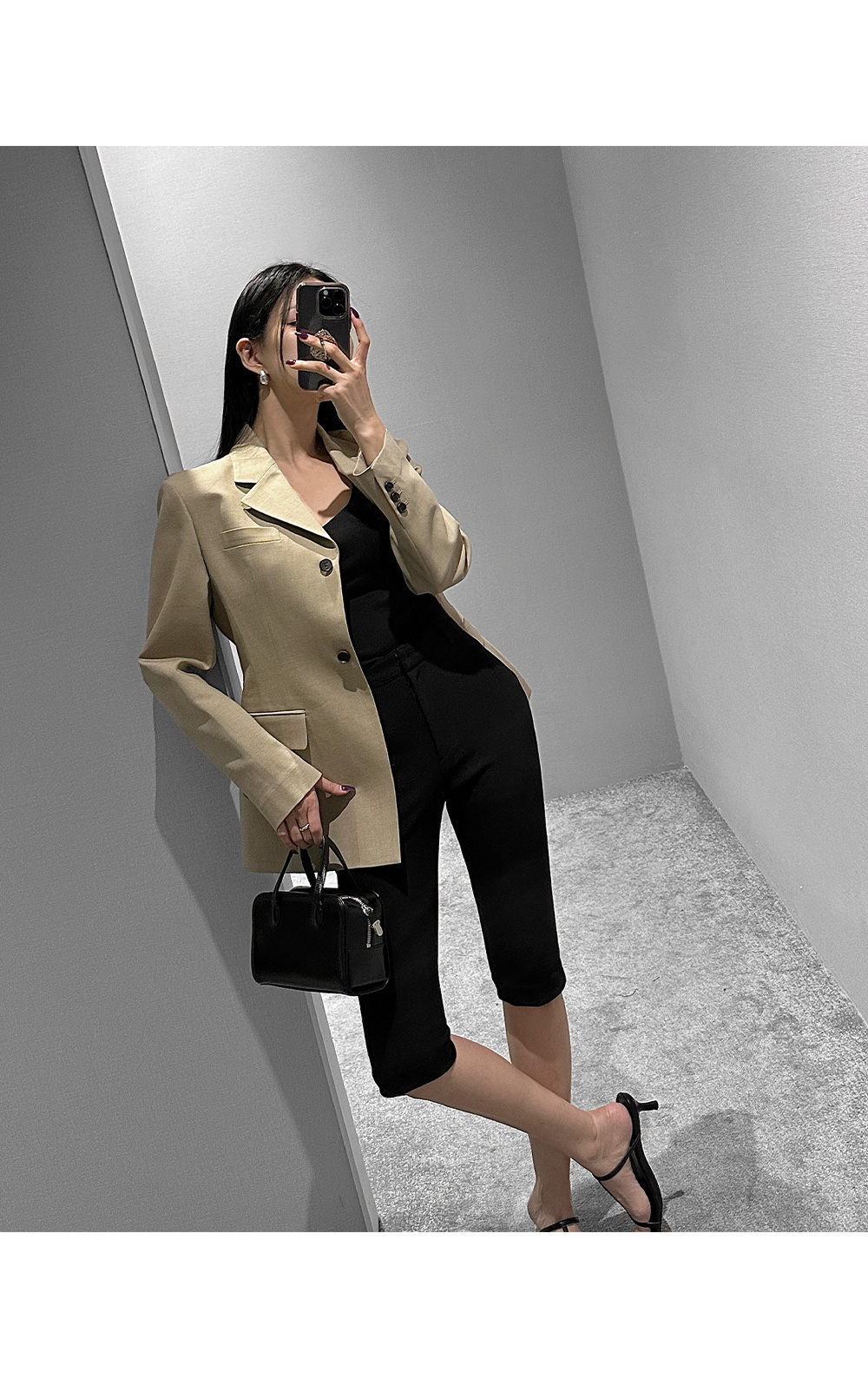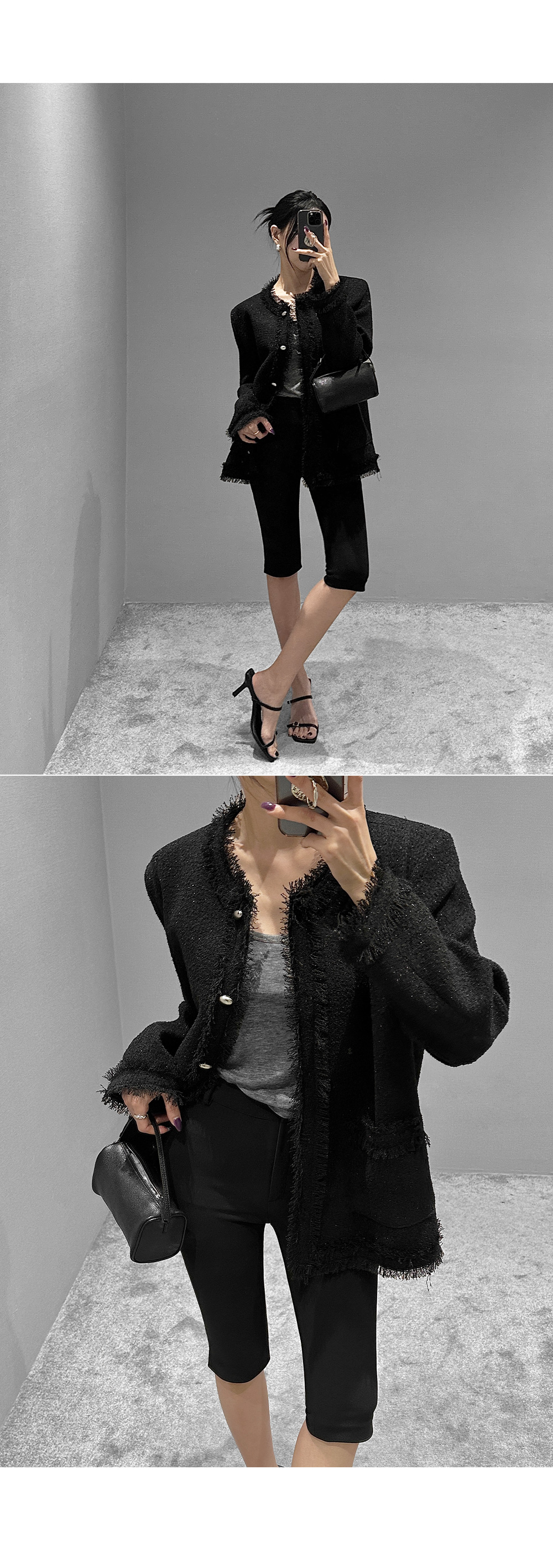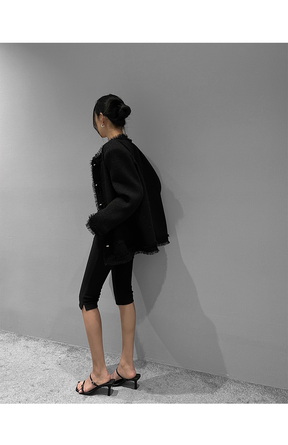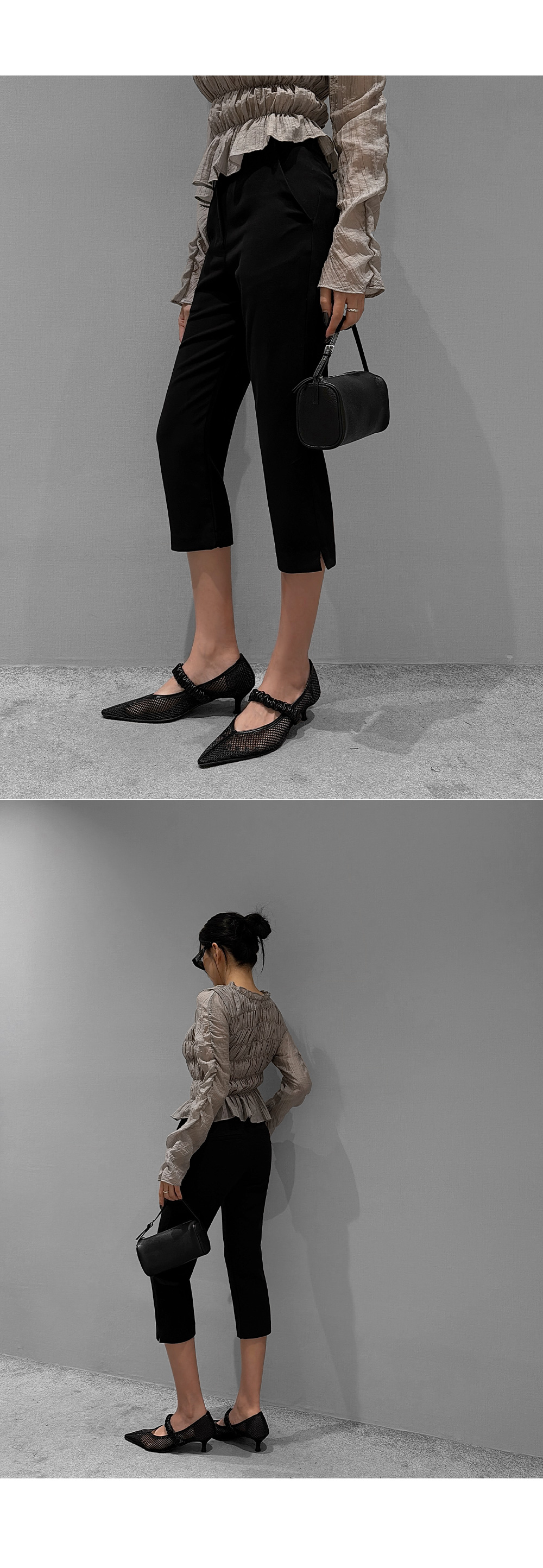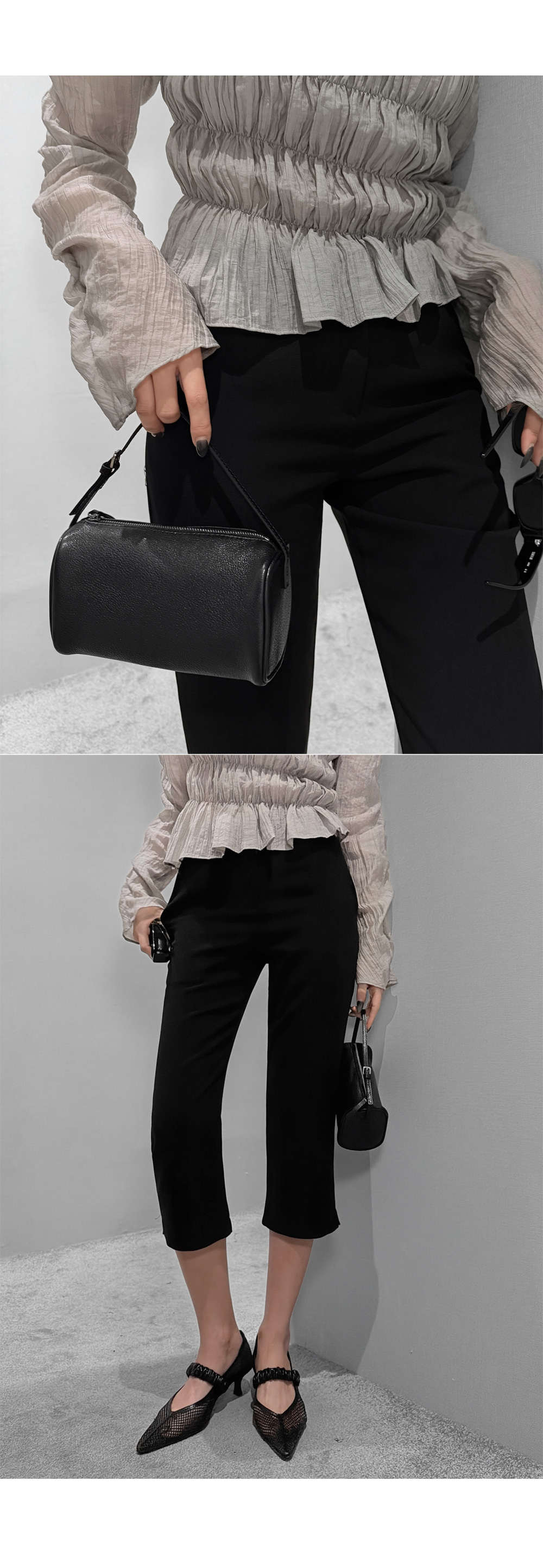 6부 기장의 바이커 슬릿 팬츠입니다. 퀄리티 높은 원단에 스판 블렌딩을 더했습니다.