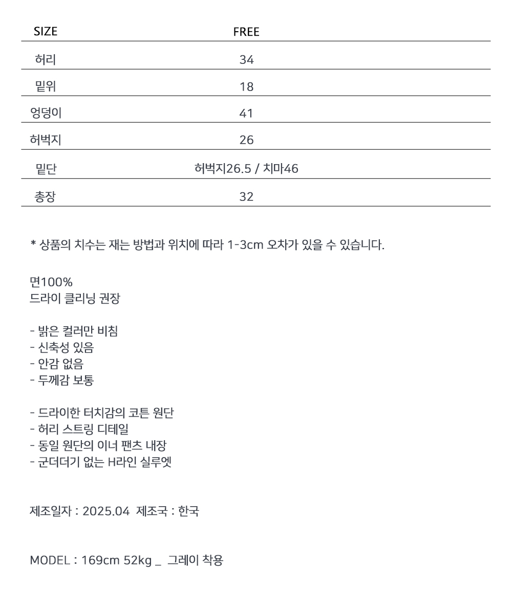 편안하게 착용되는 이지한 무드의 미니 스커트입니다. 허리 스트링 디테일로 캐주얼한 포인트를 더했고, 안감 속바지가 내장되어 활동성까지 고려했습니다. 바디라인을 따라 떨어지는 H라인으로 다양한 상의와 데일리하게 매치하기 좋습니다.
