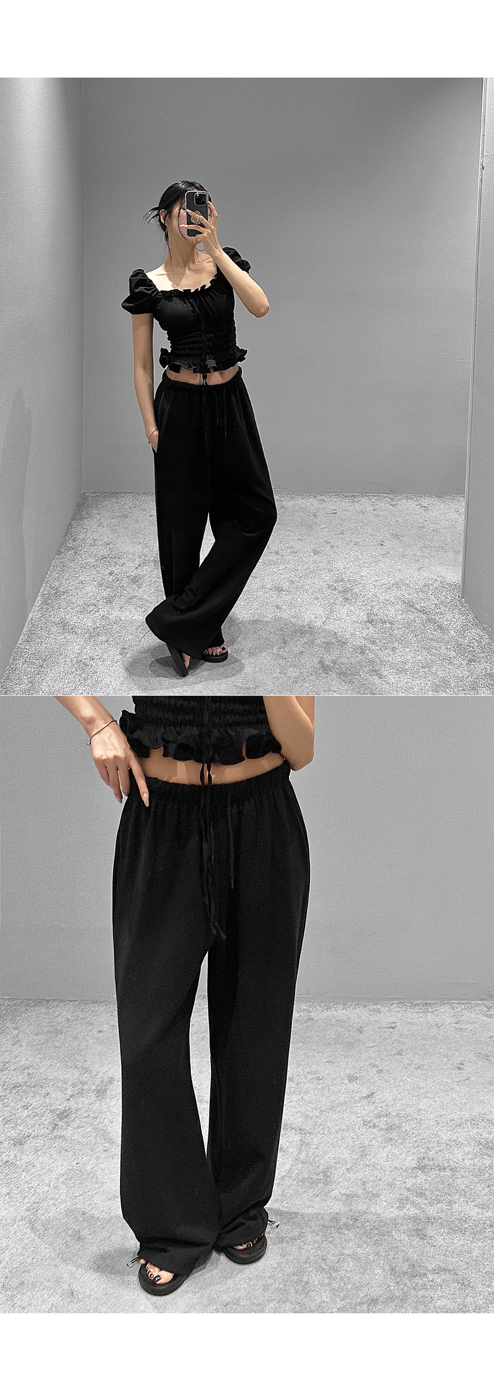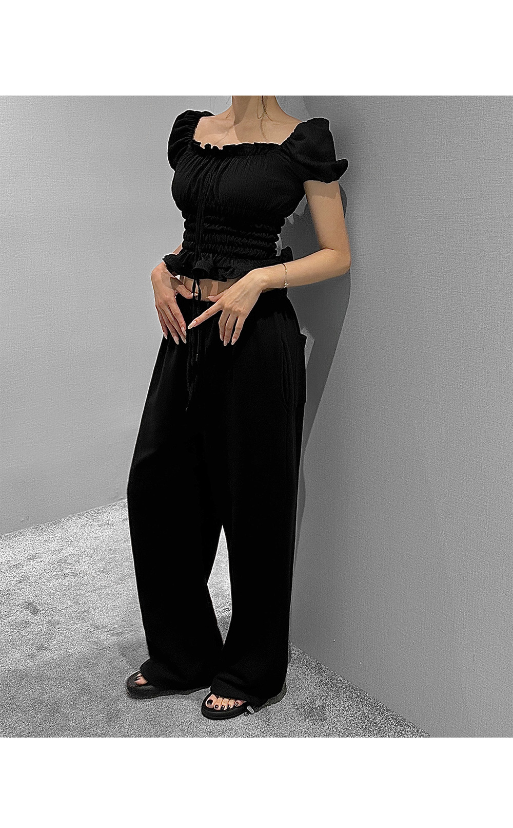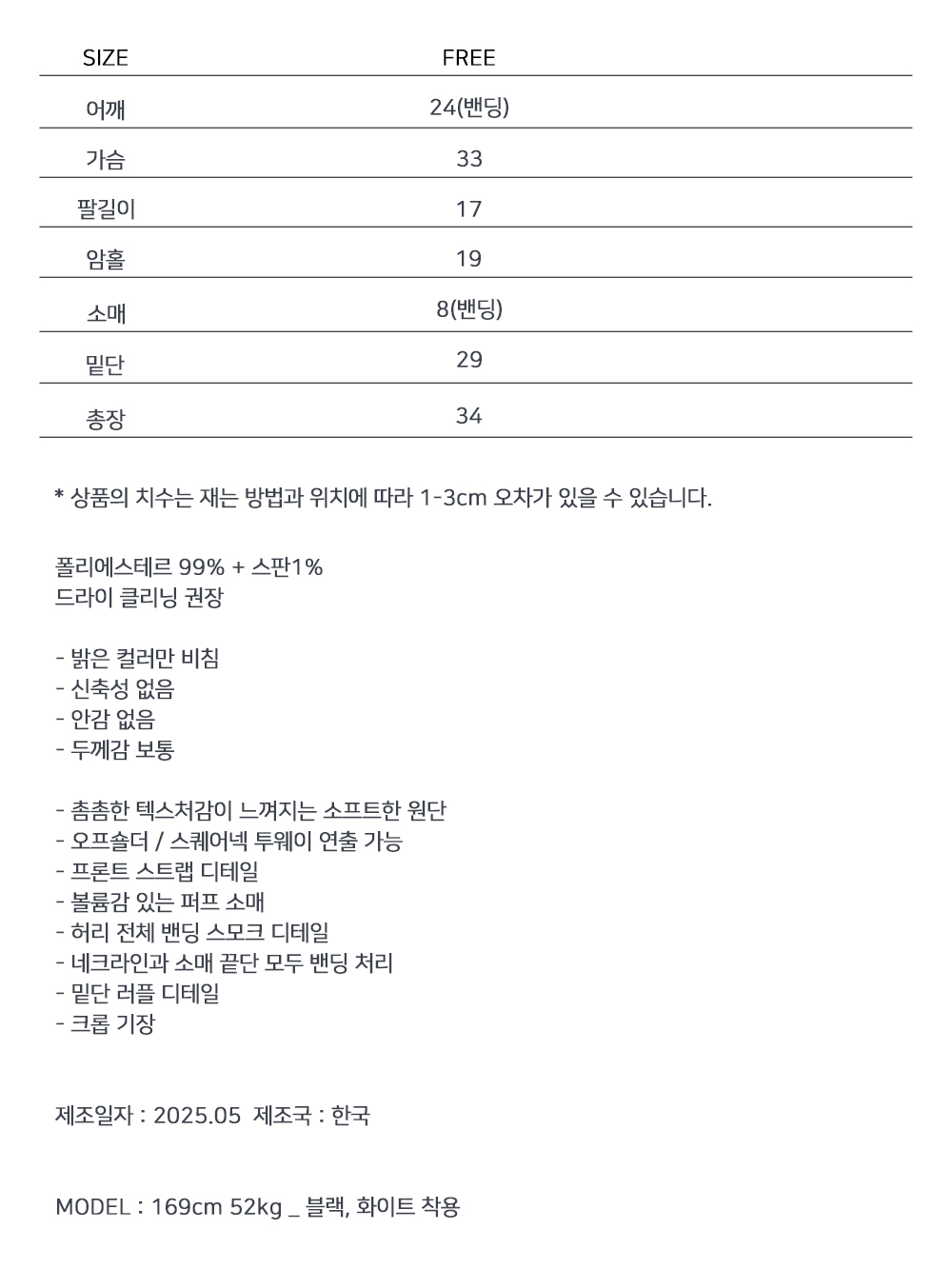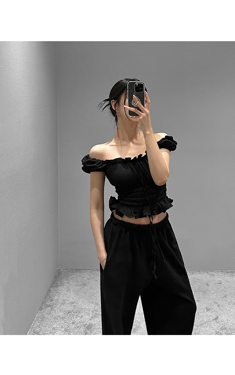 볼륨감 있는 퍼프 소매와 러플 디테일로 사랑스러운 무드를 더한 스모크 블라우스입니다. 바디라인을 따라 핏되는 셔링 디자인으로 슬림하면서도 페미닌한 실루엣을 연출해 줍니다.
