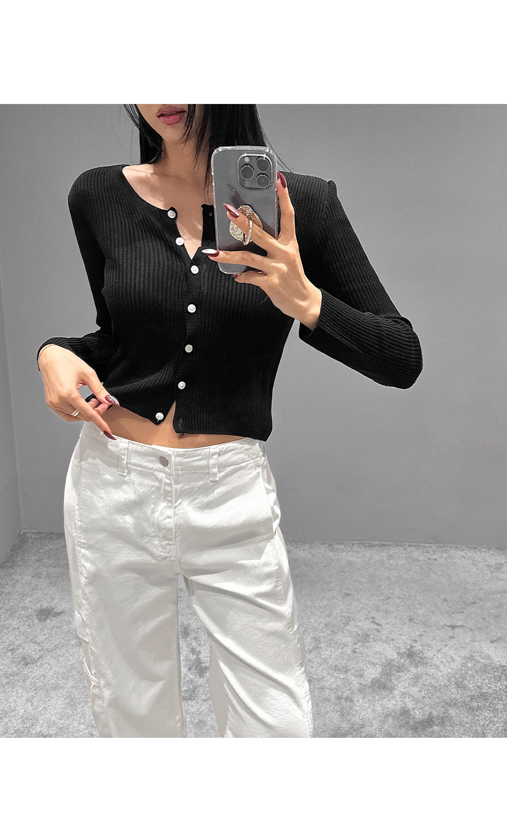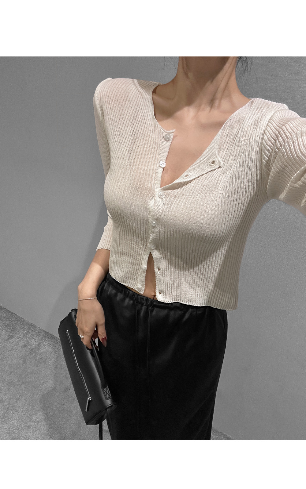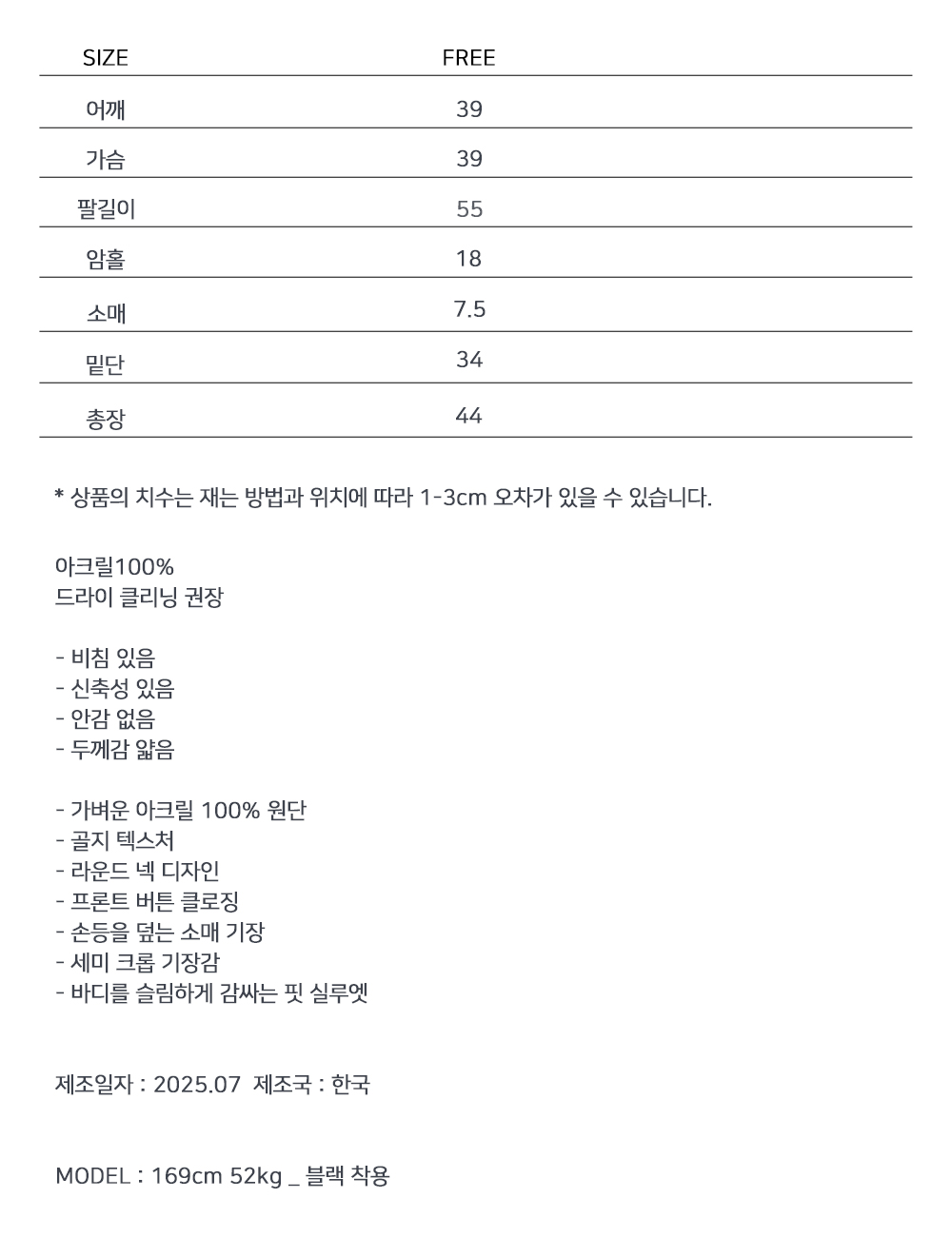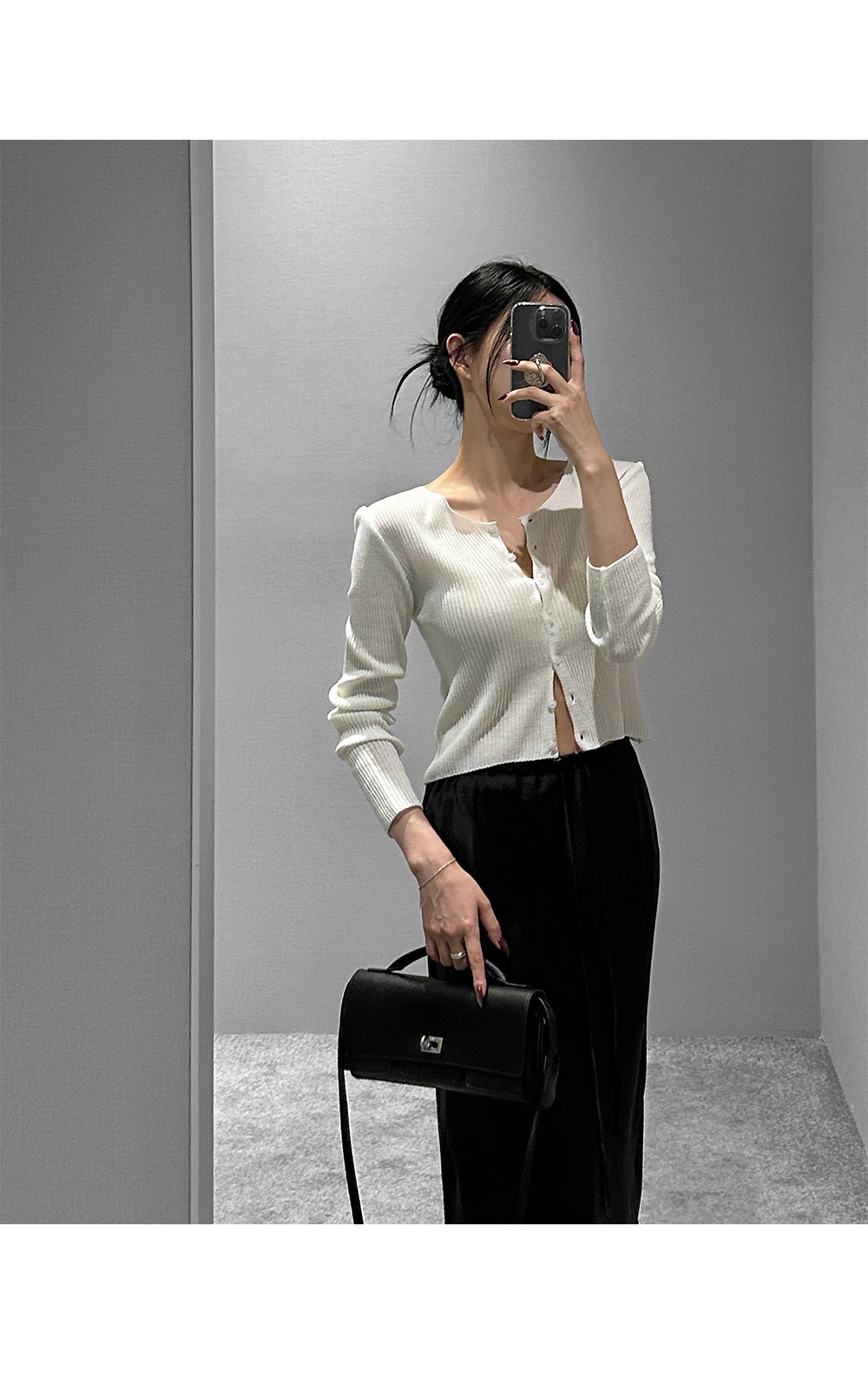 잔잔한 골지 패턴으로 슬림하고 여리여리한 실루엣을 연출해주는 썸머 버튼 가디건입니다. 가벼운 소재로 제작되어 통기성이 좋고 부담 없이 착용 가능하며, 단독으로는 물론 나시 위에 툭 걸쳐 스타일링하기 좋습니다.