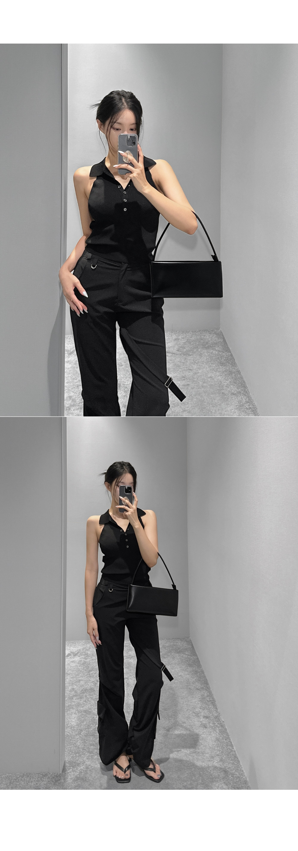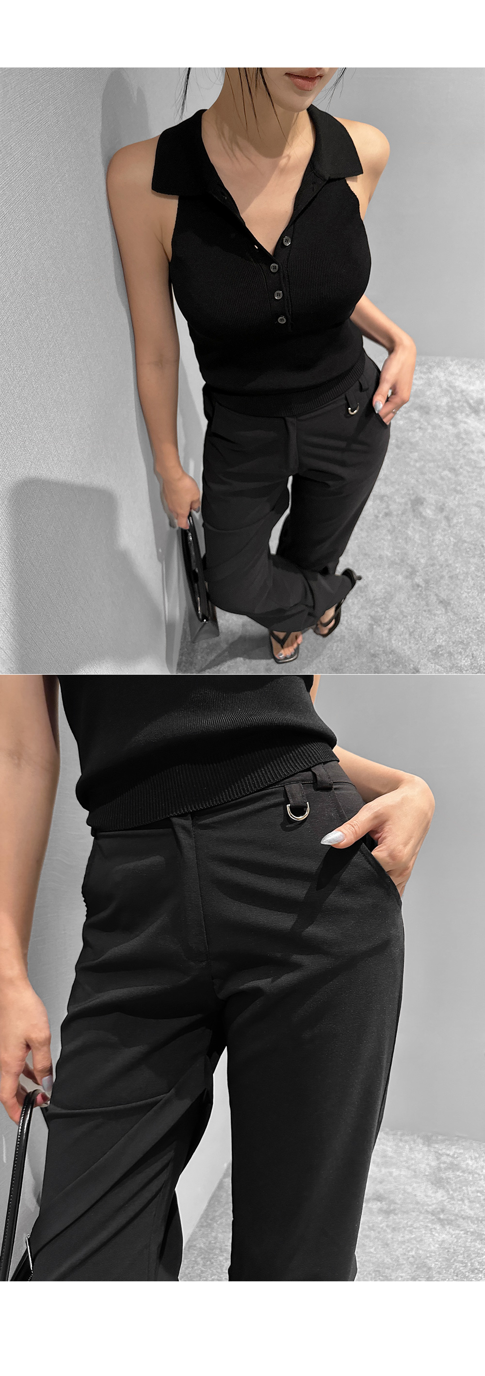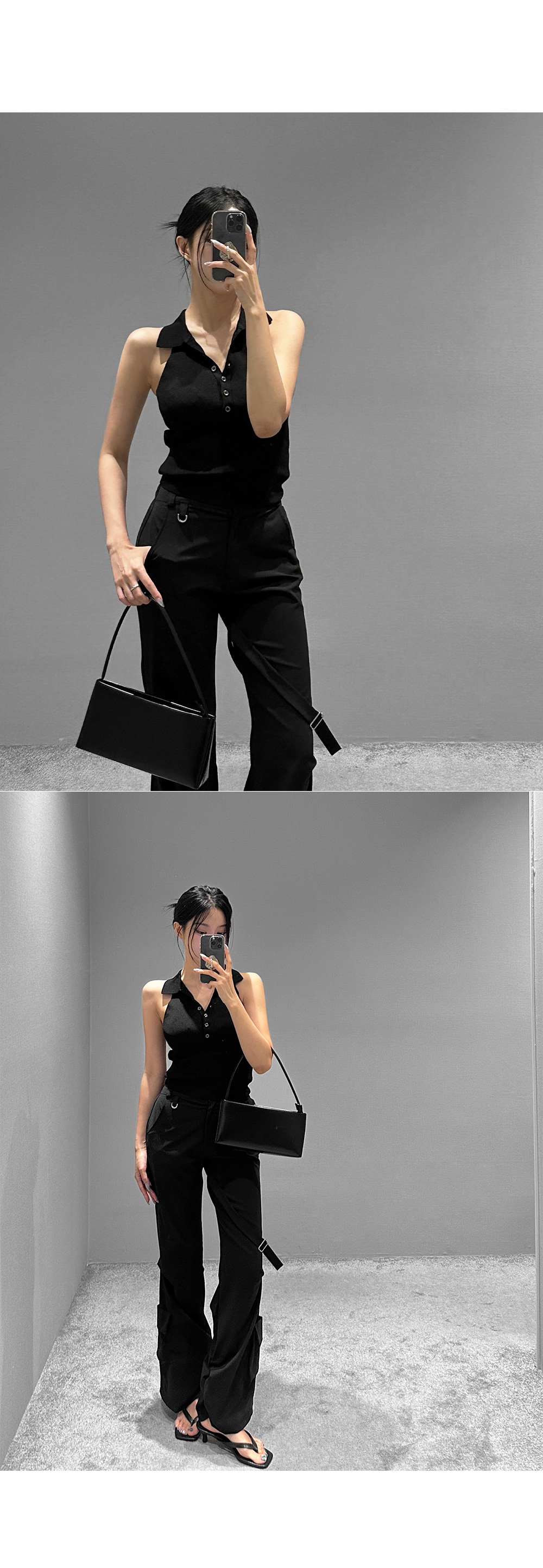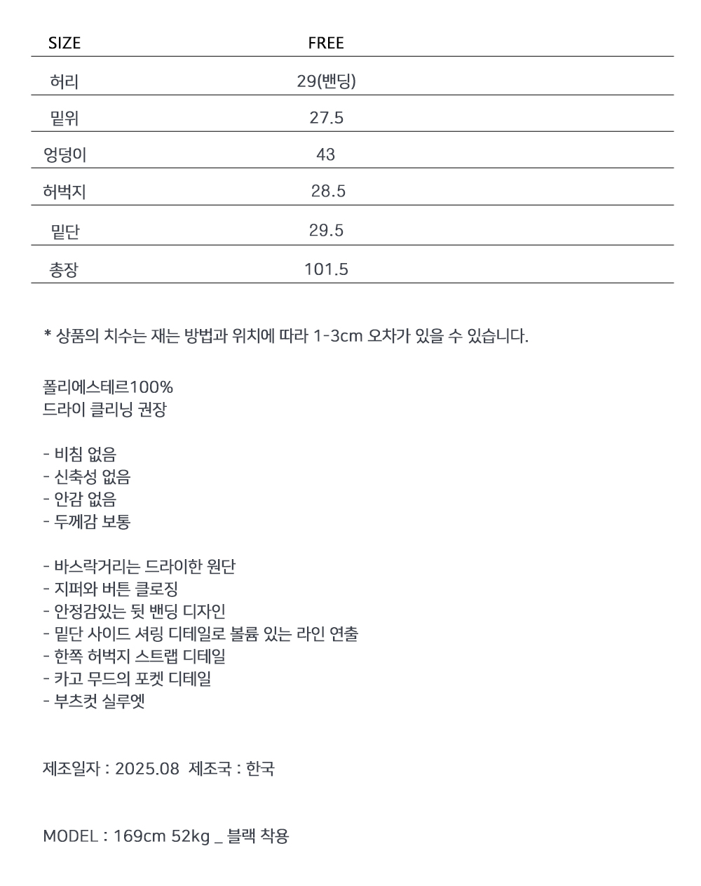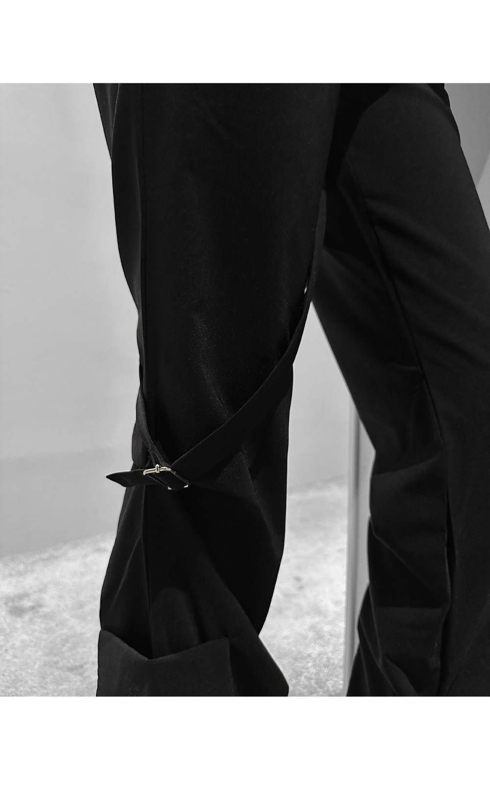 드라이한 텍스처가 돋보이는 뒷밴딩 팬츠입니다. 밑단 사이드 셔링과 허벅지 스트랩 디테일이 유니크한 포인트를 더해 개성 있는 실루엣을 완성합니다. 데일리룩부터 스트리트 무드까지 다양한 스타일링에 활용하기 좋은 아이템입니다.