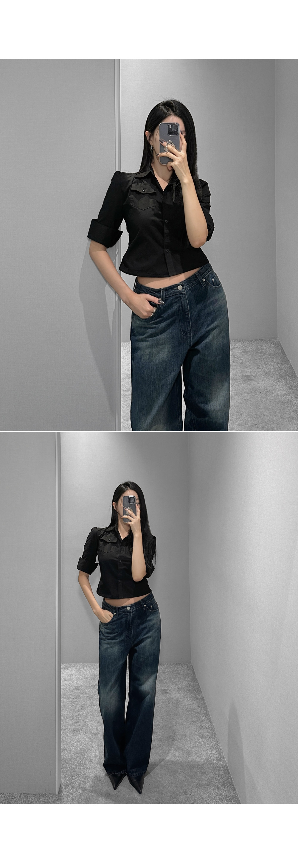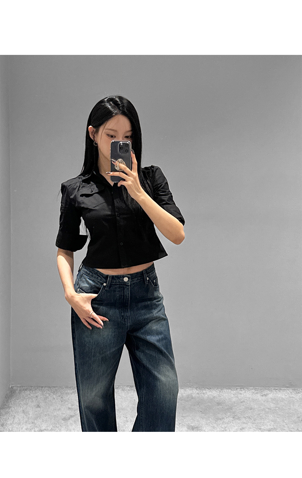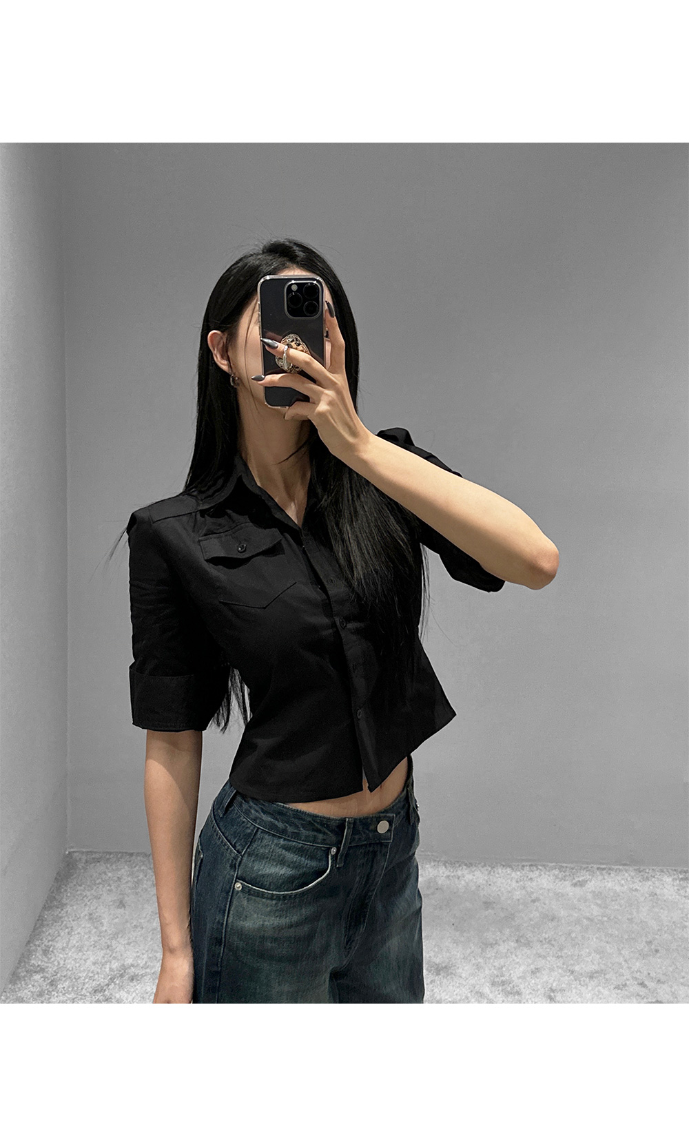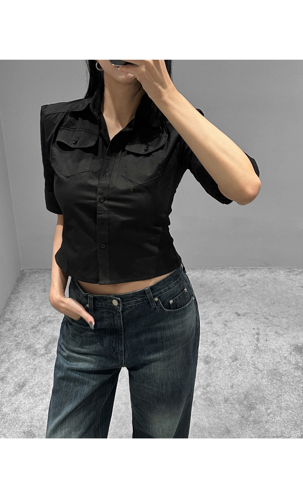 페미닌한 무드가 돋보이는 슬림핏 셔츠입니다. 바디라인을 따라 날씬하게 떨어지는 핏으로 세련된 실루엣을 연출하며, 바스트 플랩 디테일과 7부 기장 소매로 단정하면서도 감각적인 포인트를 더해줍니다.