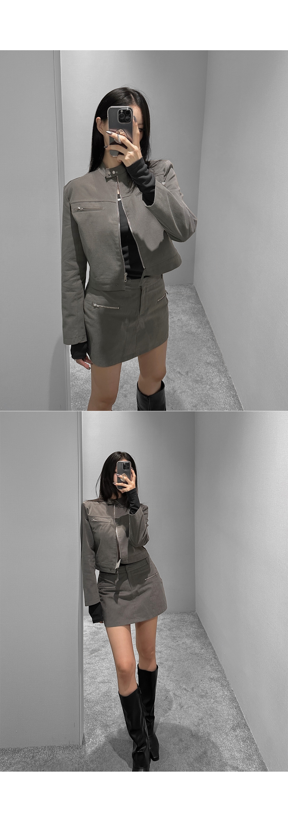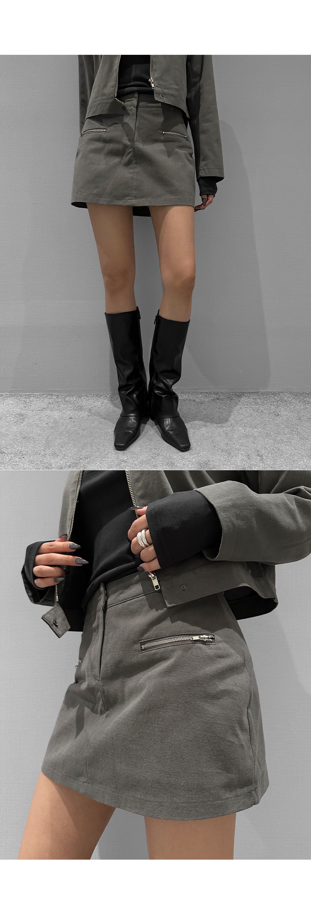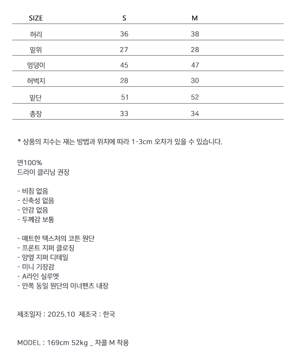 미니멀한 실루엣에 지퍼 포켓 디테일을 더한 세련된 무드의 스커트입니다. 안쪽에 동일 원단의 이너 팬츠가 내장되어 안정감 있는 착용감을 선사합니다. 자켓과 셋업으로 연출하면 감각적인 스타일링이 가능해 소장가치 높은 아이템입니다.