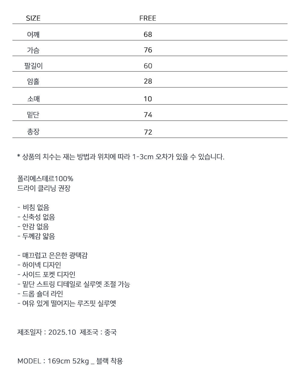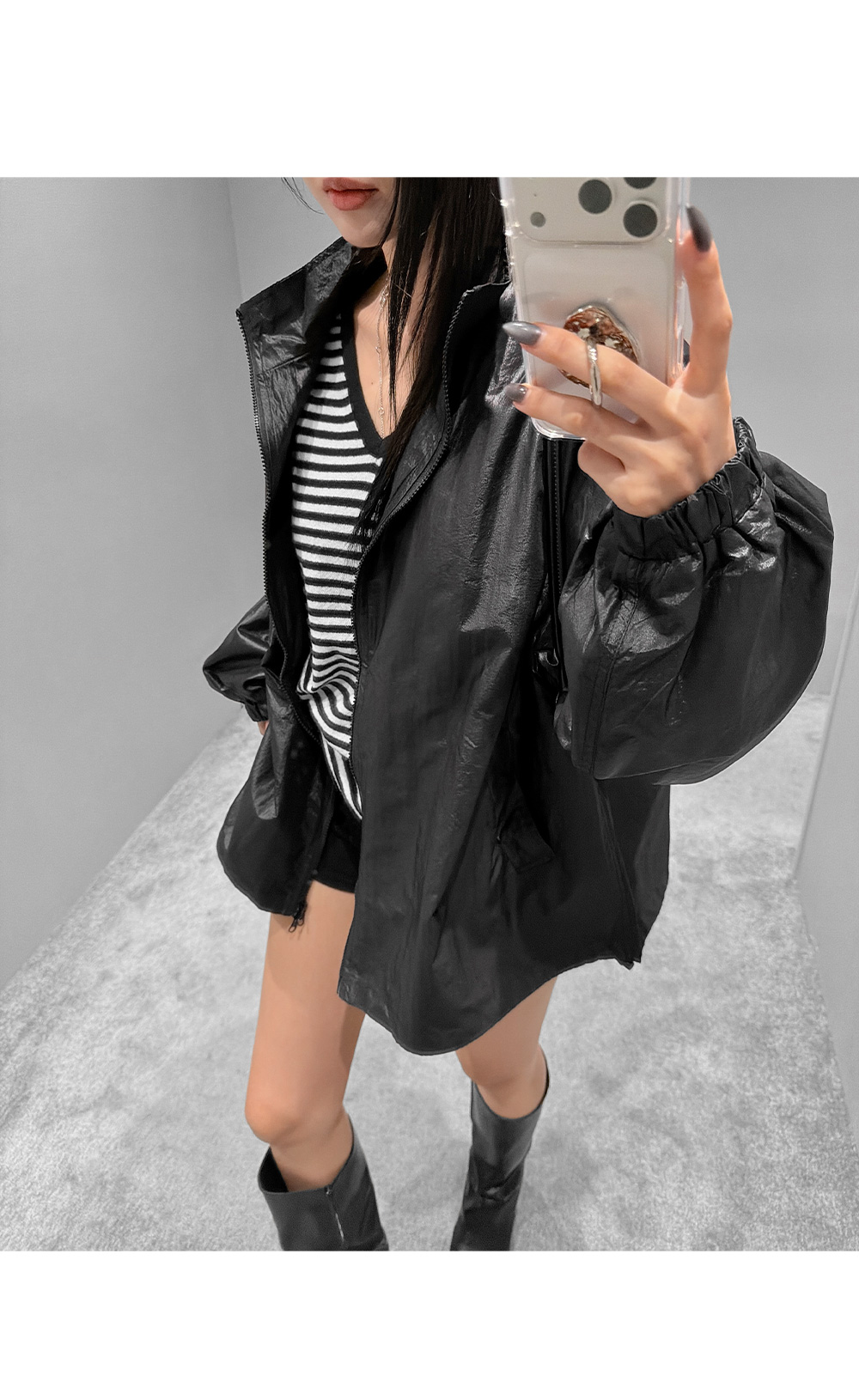 은은한 글로시 텍스처로 세련된 무드를 연출하는 하이넥 점퍼입니다. 가벼운 소재로 간절기부터 활용하기 좋으며, 여유 있는 실루엣이 자연스럽게 떨어져 스타일리시한 실루엣을 완성합니다. 밑단 스트링으로 다양한 실루엣 연출이 가능합니다.