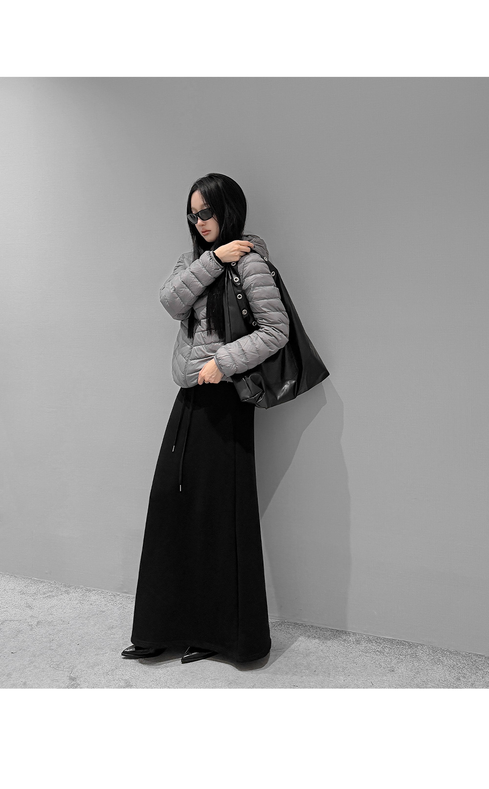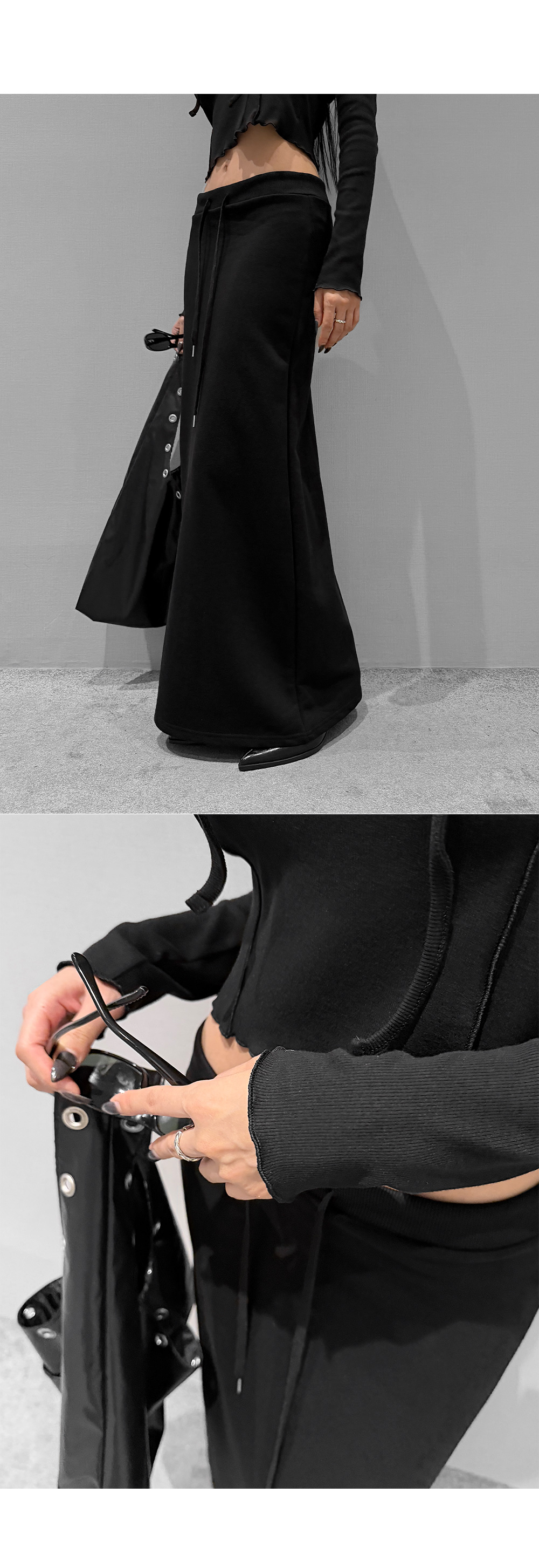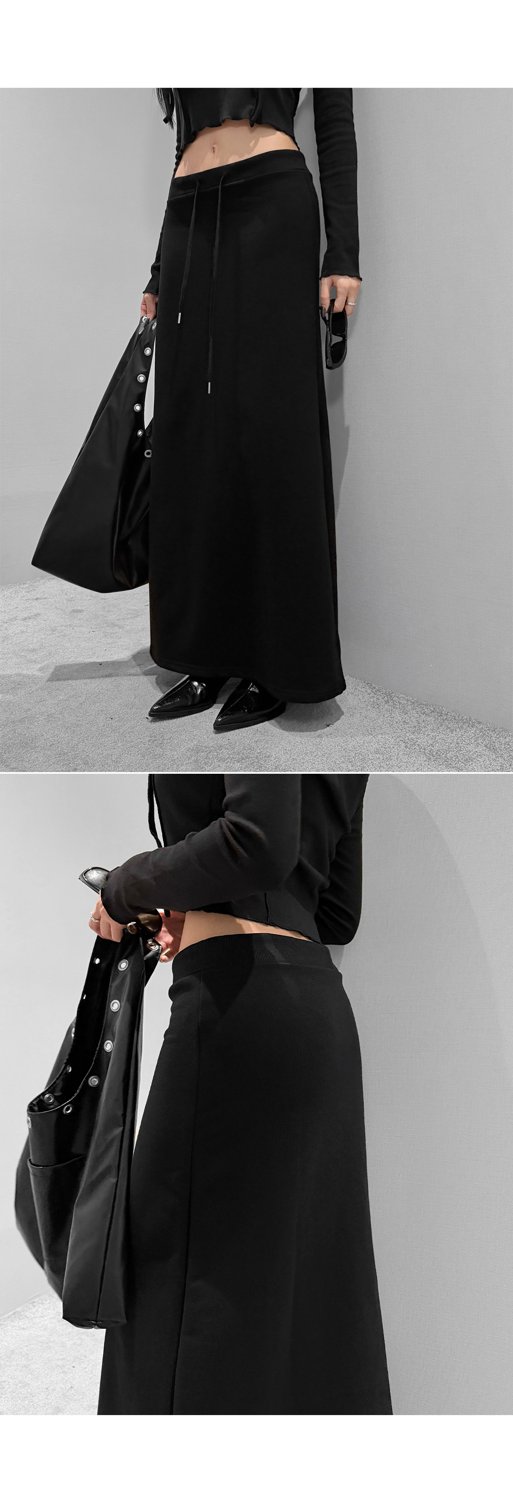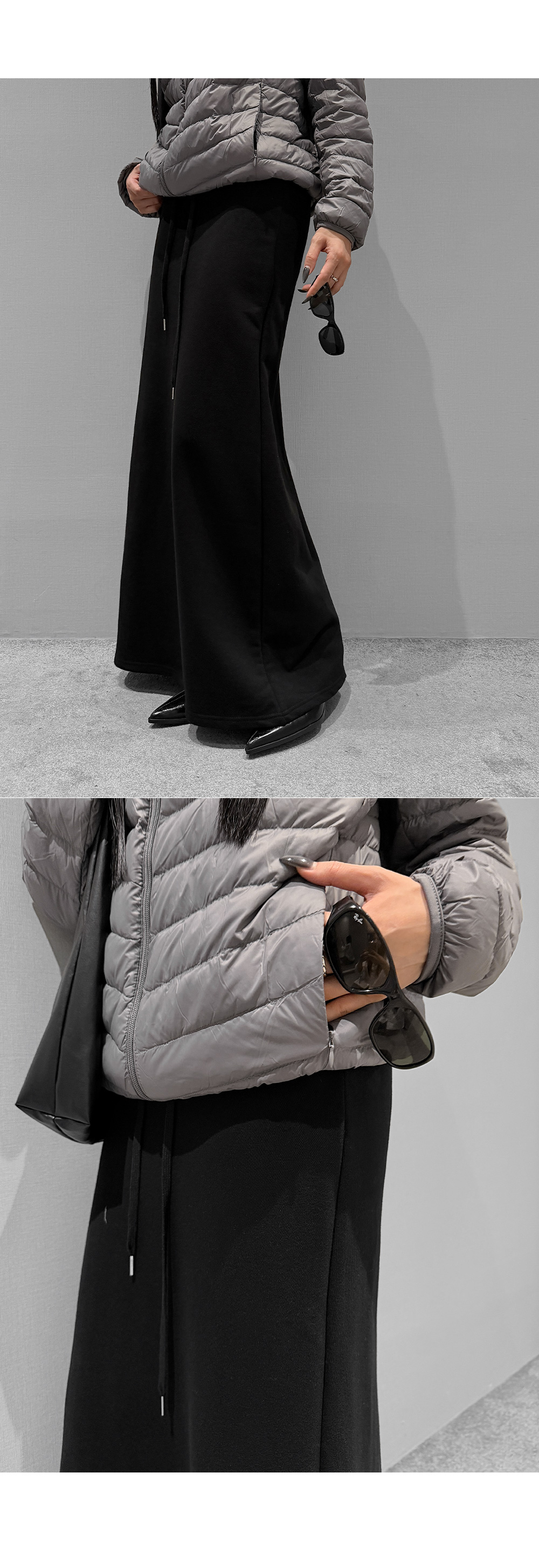 미니멀한 무드의 밴딩 맥시 스커트입니다. 부드럽고 밀도 높은 코튼 블렌딩 원단으로 깔끔하게 떨어지는 라인이 돋보이며, 허리 스트링 디테일로 안정감 있게 착용됩니다. 롱한 기장감으로 길고 슬림한 실루엣을 연출합니다.