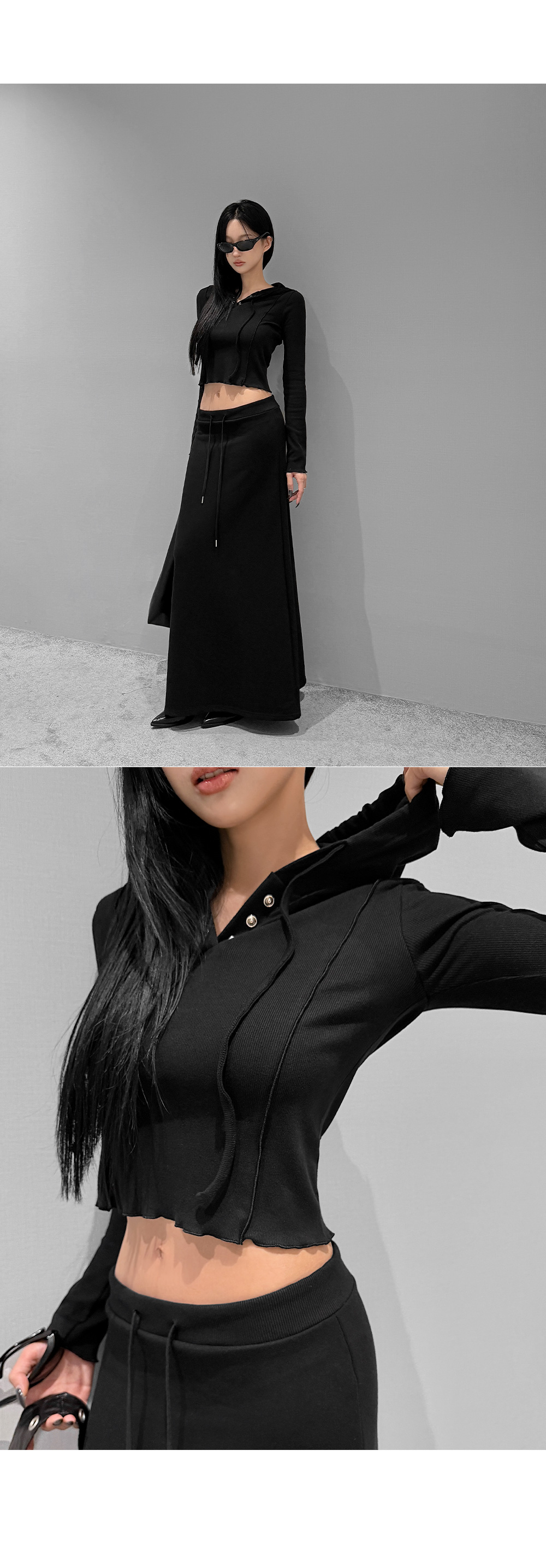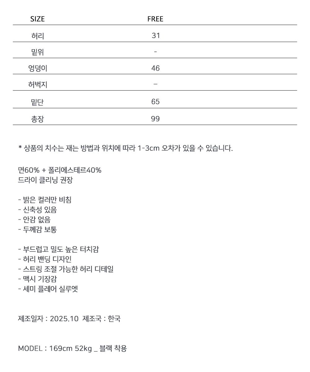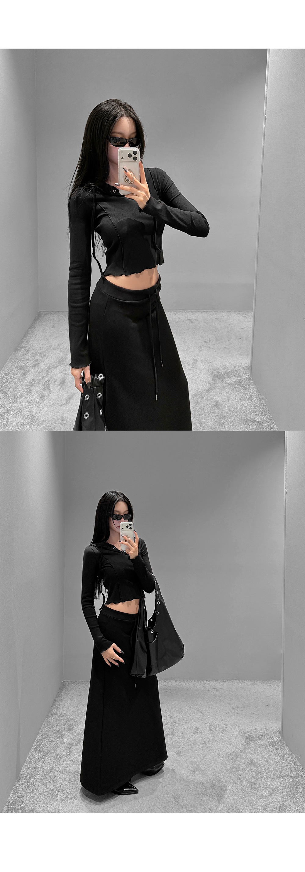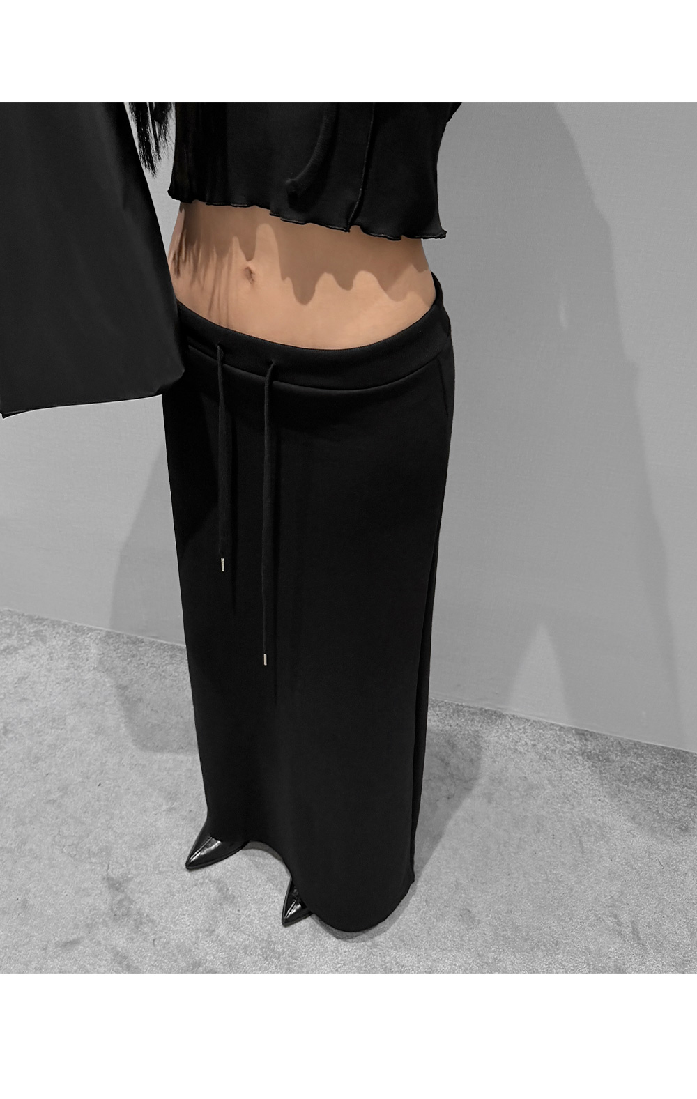 미니멀한 무드의 밴딩 맥시 스커트입니다. 부드럽고 밀도 높은 코튼 블렌딩 원단으로 깔끔하게 떨어지는 라인이 돋보이며, 허리 스트링 디테일로 안정감 있게 착용됩니다. 롱한 기장감으로 길고 슬림한 실루엣을 연출합니다.