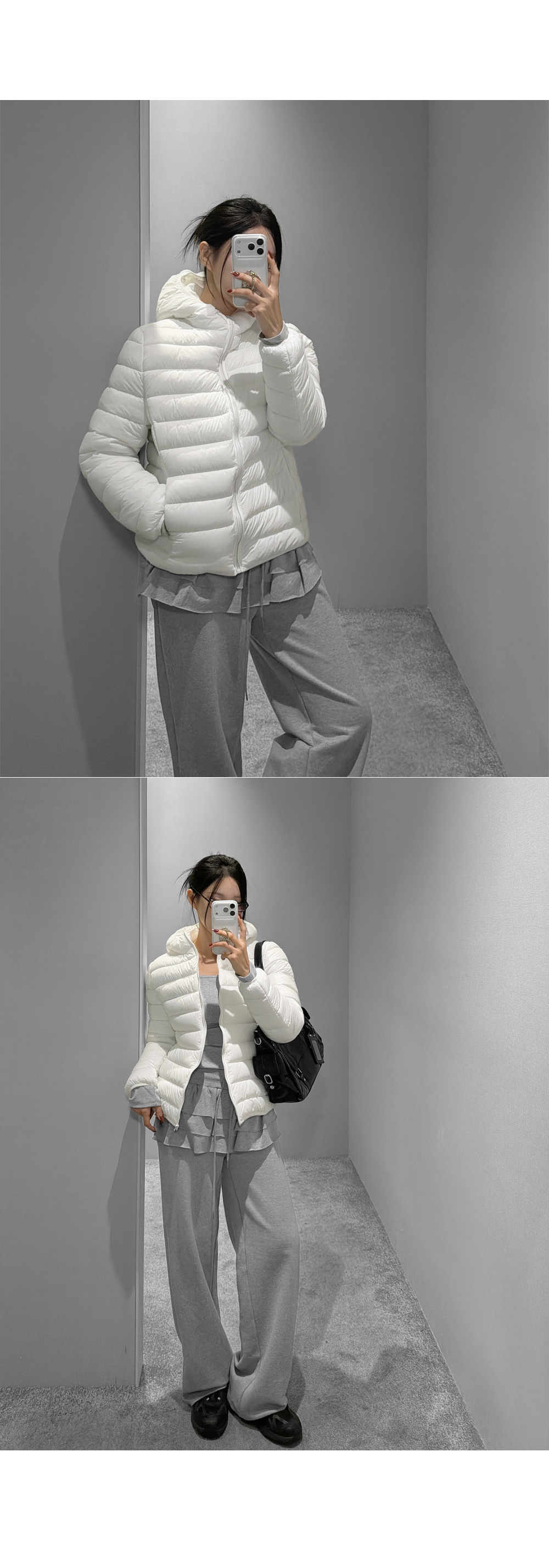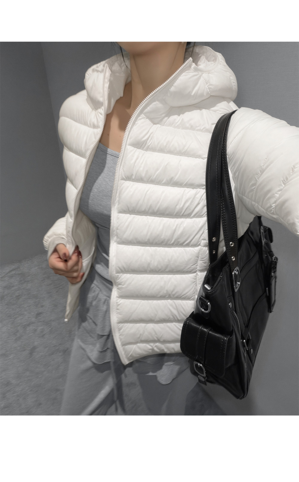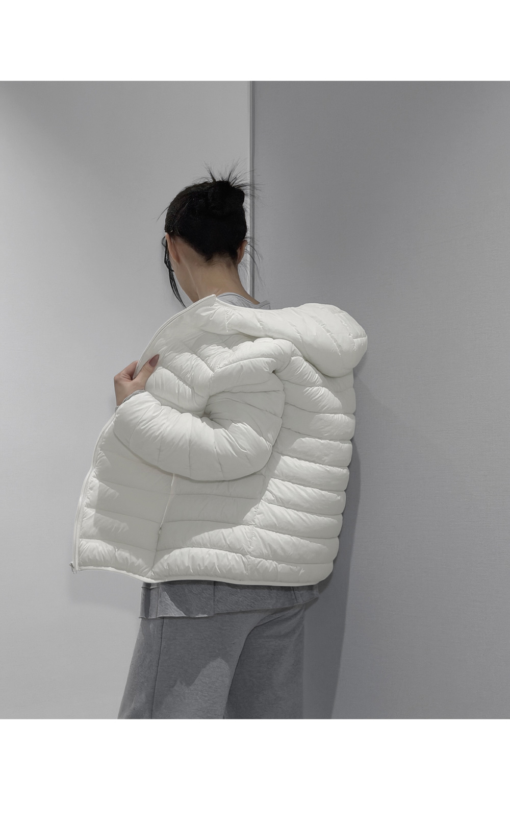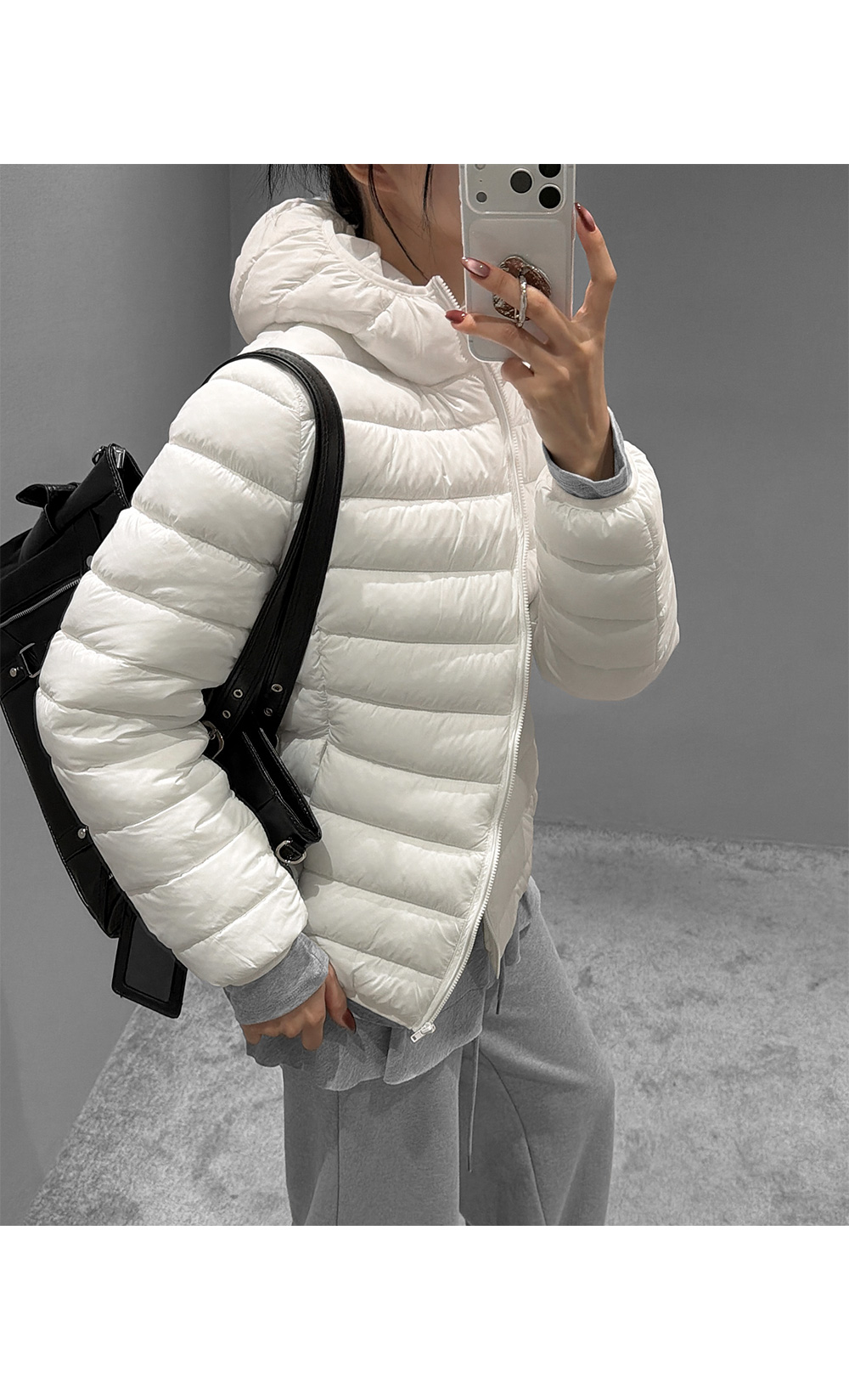 가볍지만 충분한 보온감을 더한 웰론 패딩 점퍼입니다. 깔끔한 퀼팅 라인과 볼륨 있는 후드 디자인으로 캐주얼하면서도 단정한 인상을 주며, 부해 보이지 않게 연출됩니다. 가볍게 걸치기 좋은 경량 두께로, 일상 속 데일리 아우터로 활용하기 좋습니다.