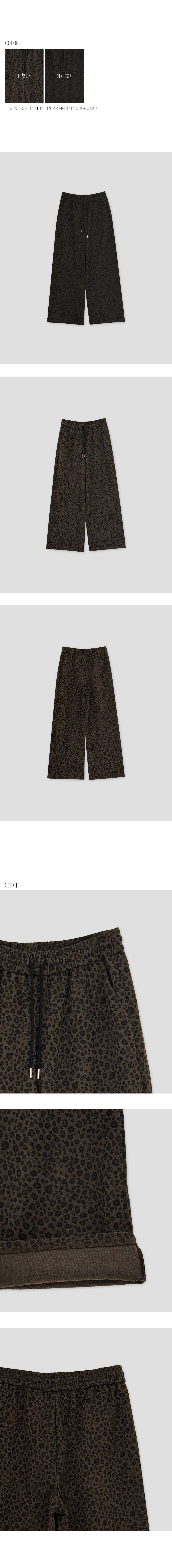 은근한 포인트가 되는 레오파드 패턴의 밴딩 팬츠입니다. 톤 다운된 컬러 조합으로 과하지 않게 스타일링되며, 편안한 착용감을 느낄 수 있습니다. 와이드하게 떨어지는 실루엣이 자연스러운 체형 보완 효과를 주며, 언제든지 손쉽게 활용되는 아이템입니다.
