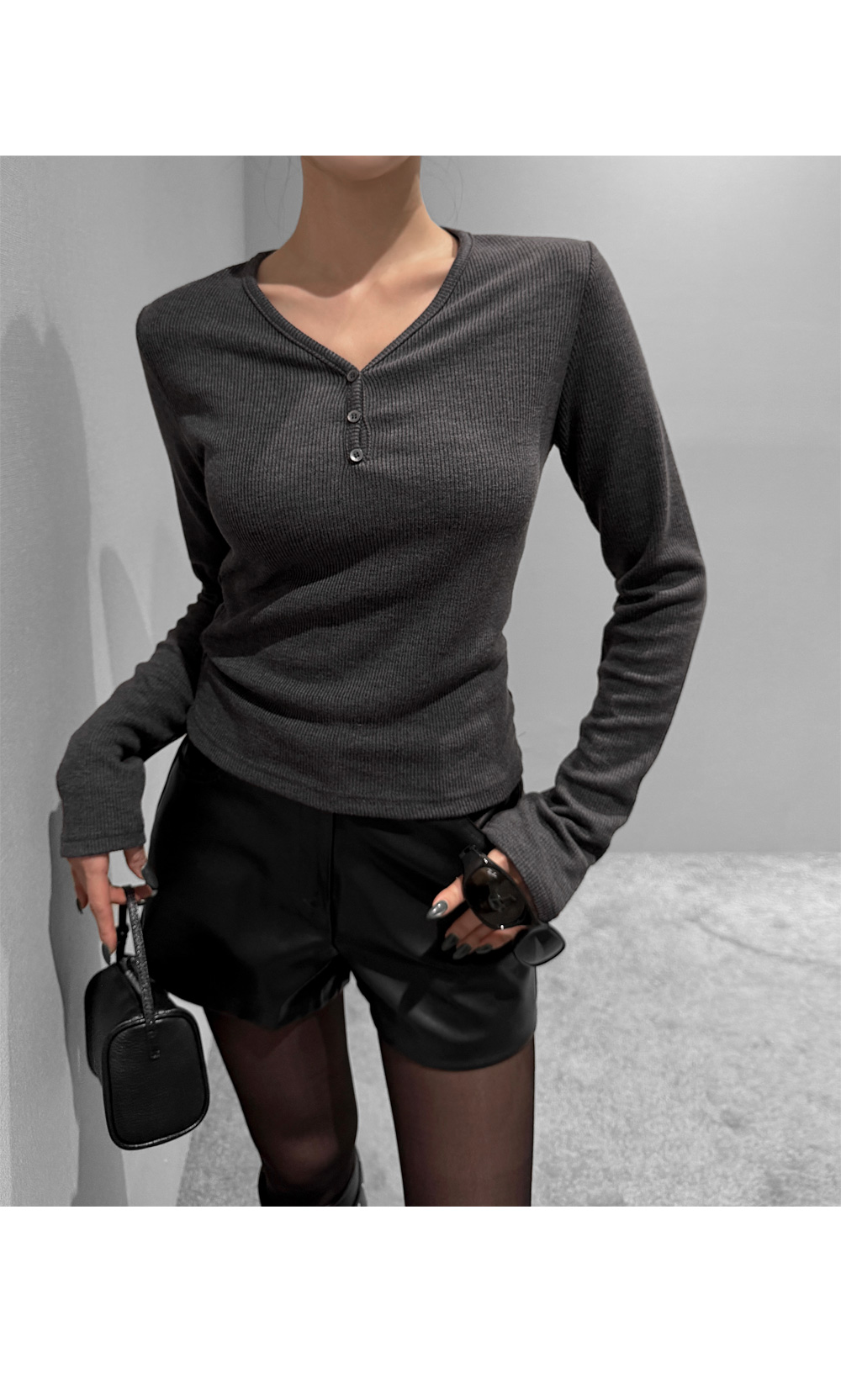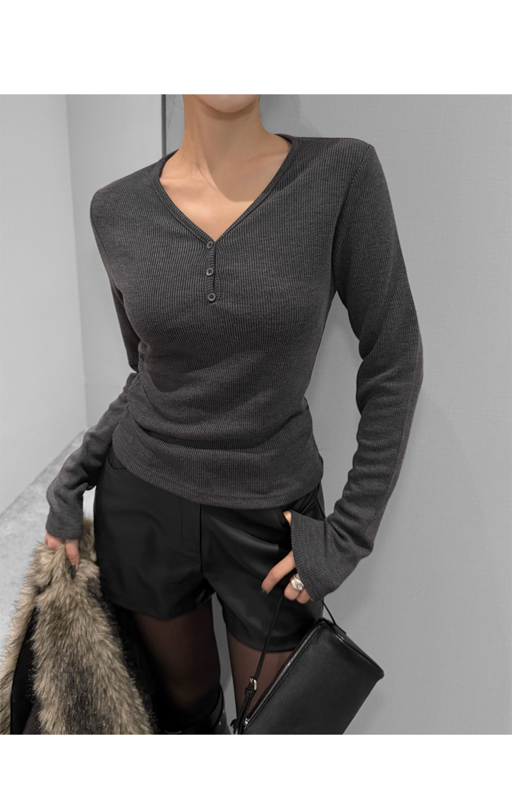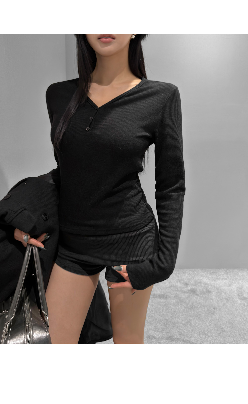 차분한 분위기 속 은은한 페미닌함이 느껴지는 브이넥 골지 티셔츠입니다. 부드러운 터치감과 자연스러운 신축성으로 단독은 물론 이너로도 활용하기 좋으며, 슬림하게 떨어지는 실루엣으로 다양한 하의와 깔끔한 코디가 완성됩니다.