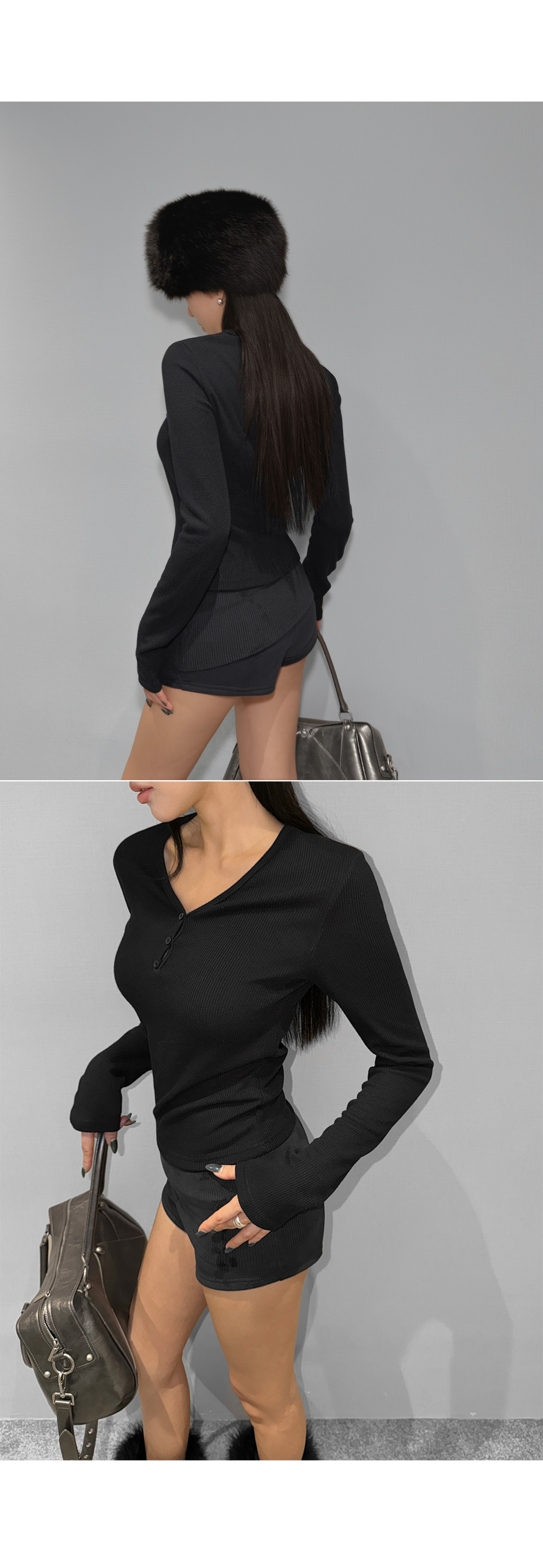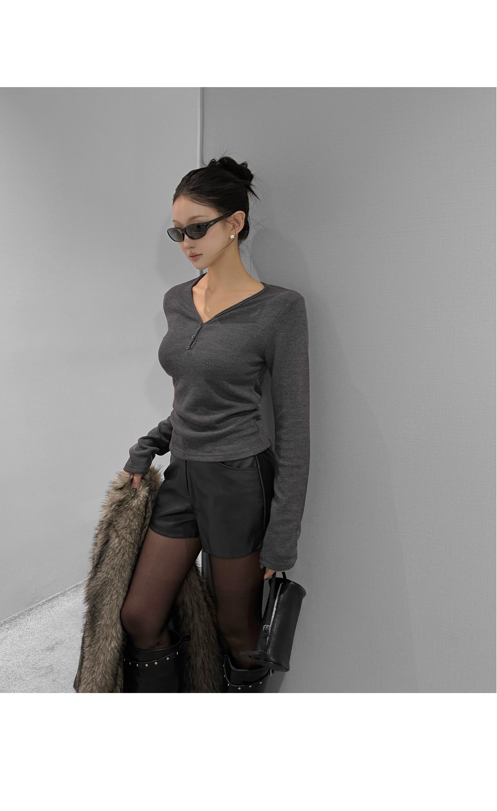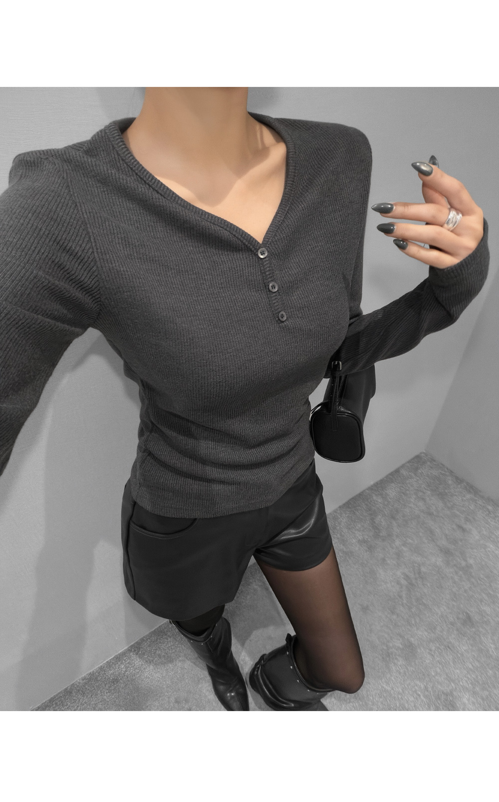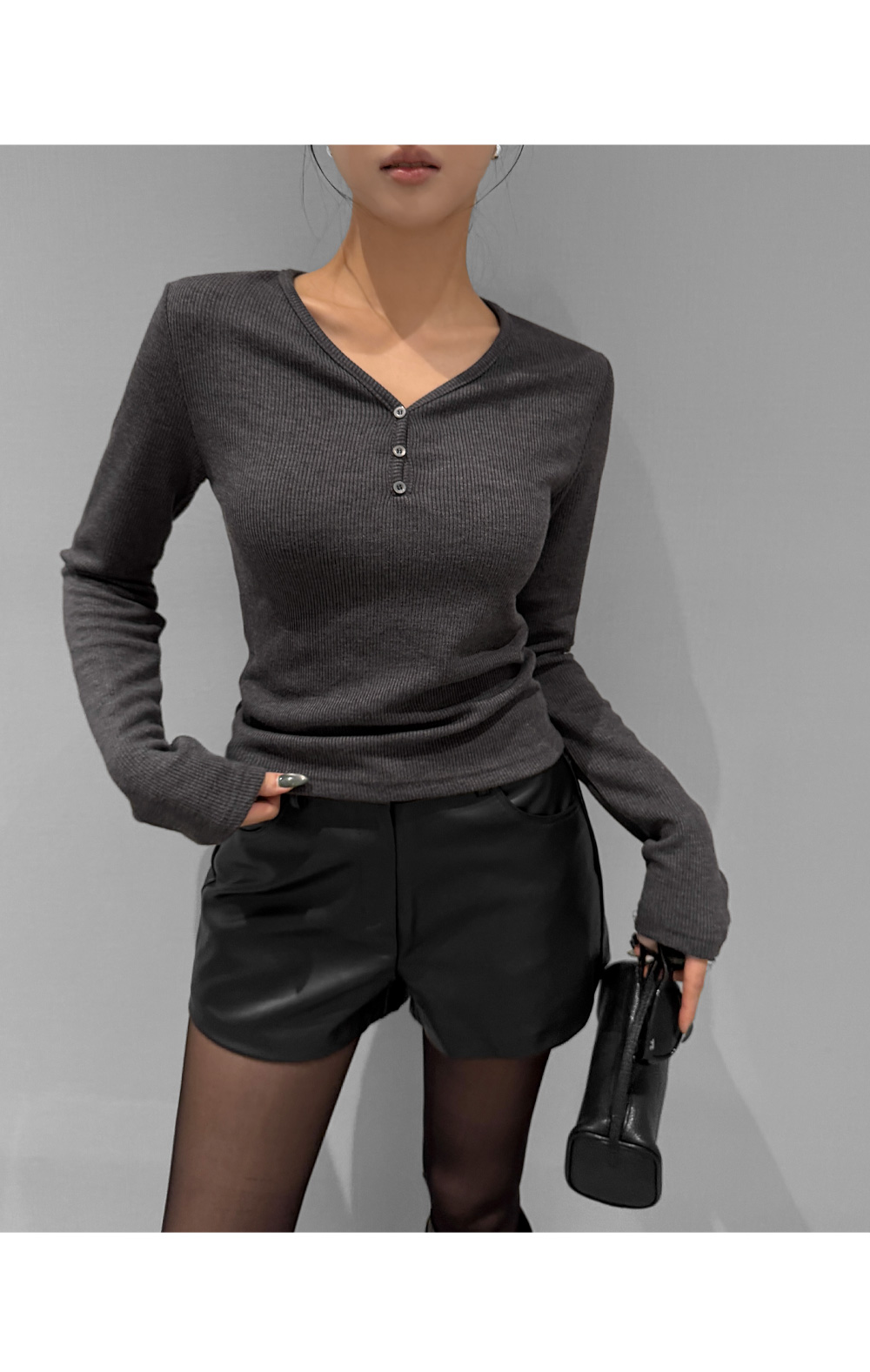차분한 분위기 속 은은한 페미닌함이 느껴지는 브이넥 골지 티셔츠입니다. 부드러운 터치감과 자연스러운 신축성으로 단독은 물론 이너로도 활용하기 좋으며, 슬림하게 떨어지는 실루엣으로 다양한 하의와 깔끔한 코디가 완성됩니다.