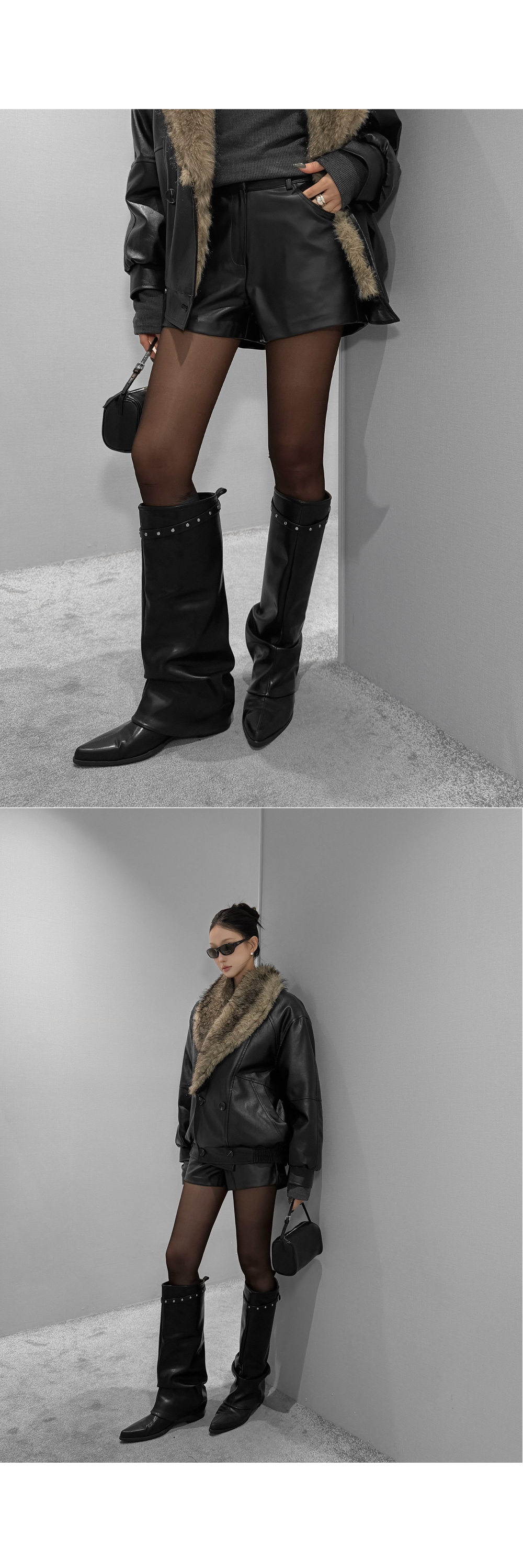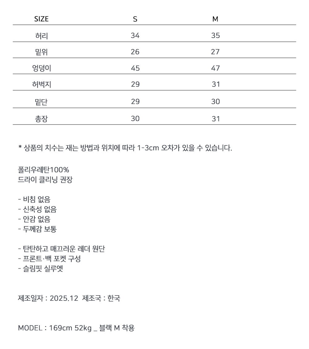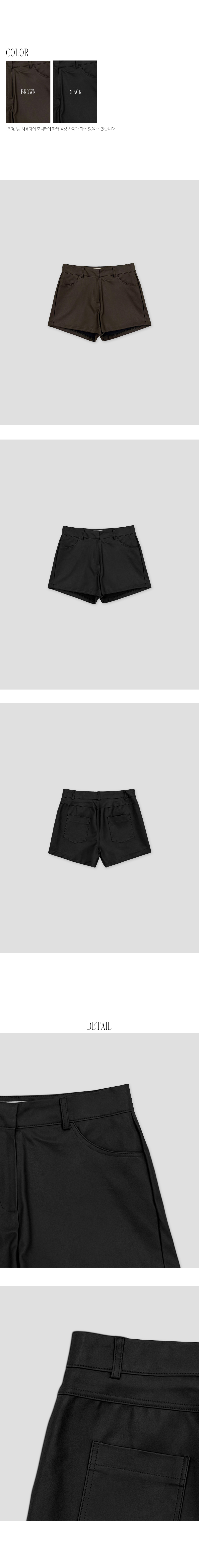 도시적인 무드를 담아낸 심플한 레더 쇼츠로, 군더더기 없는 디자인이 다양한 상의와 세련된 조화를 이룹니다. 미니멀한 실루엣과 안정적인 핏으로 데일리부터 포인트 룩까지 폭넓게 활용하기 좋은 아이템입니다.