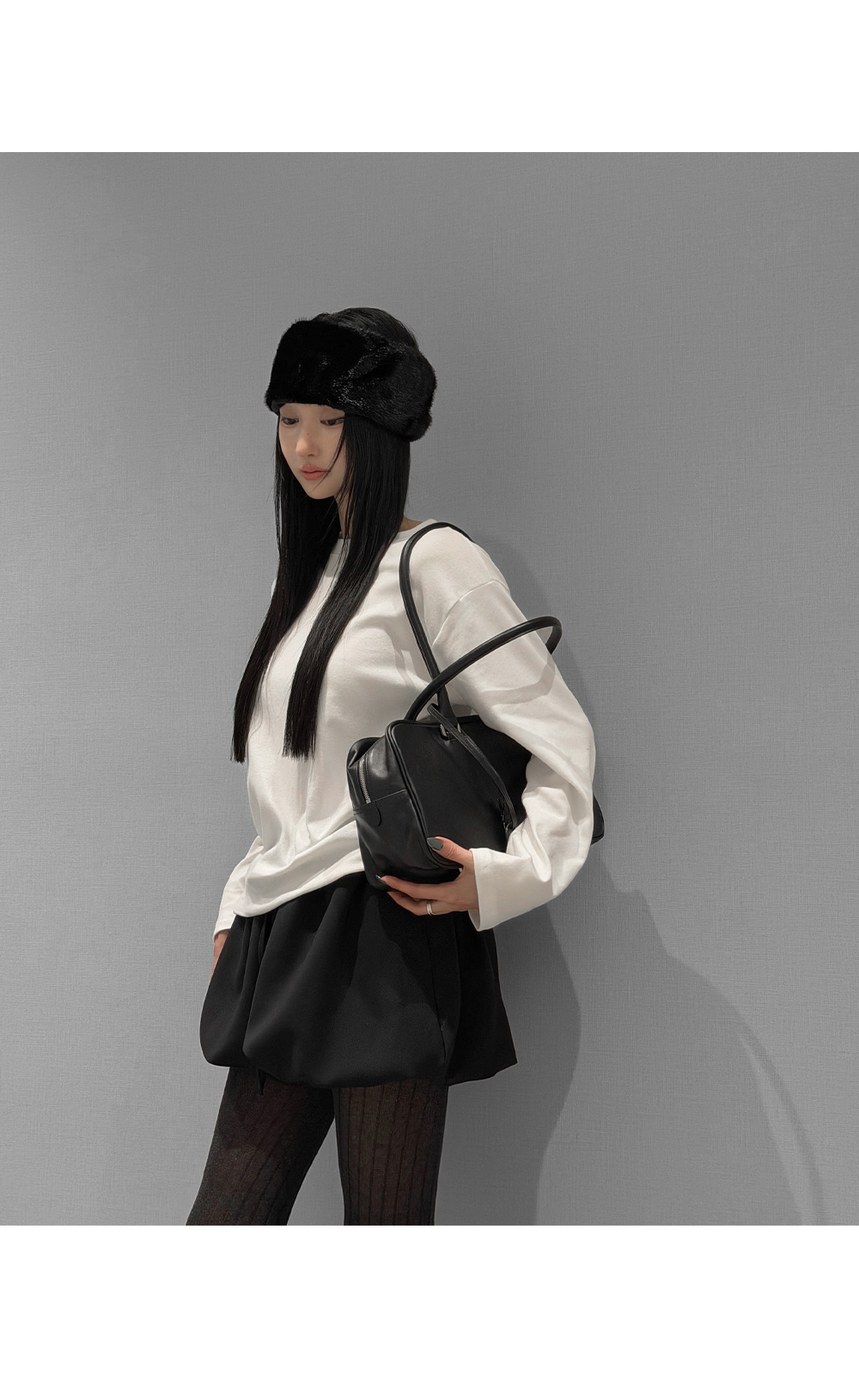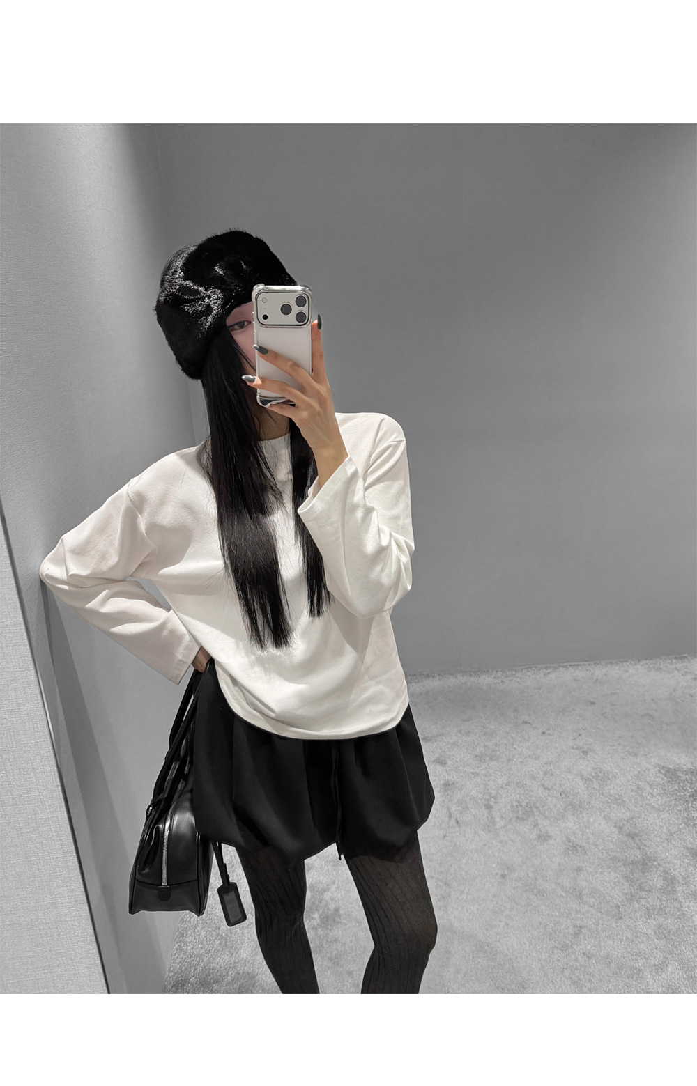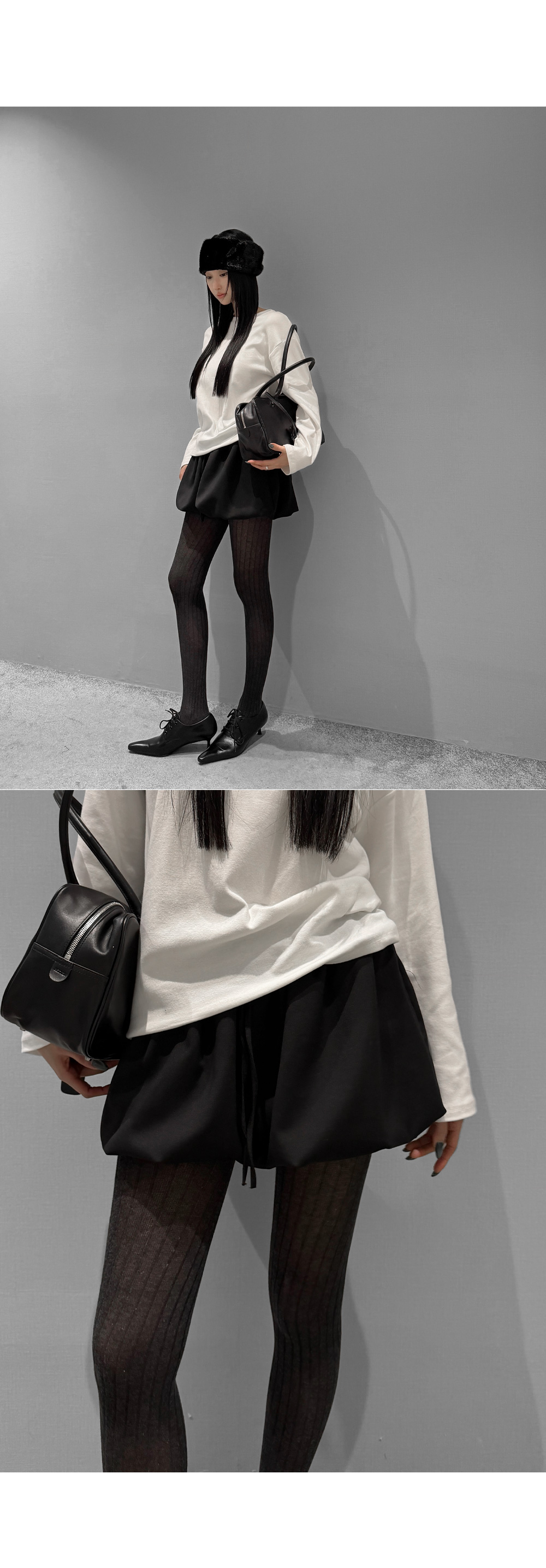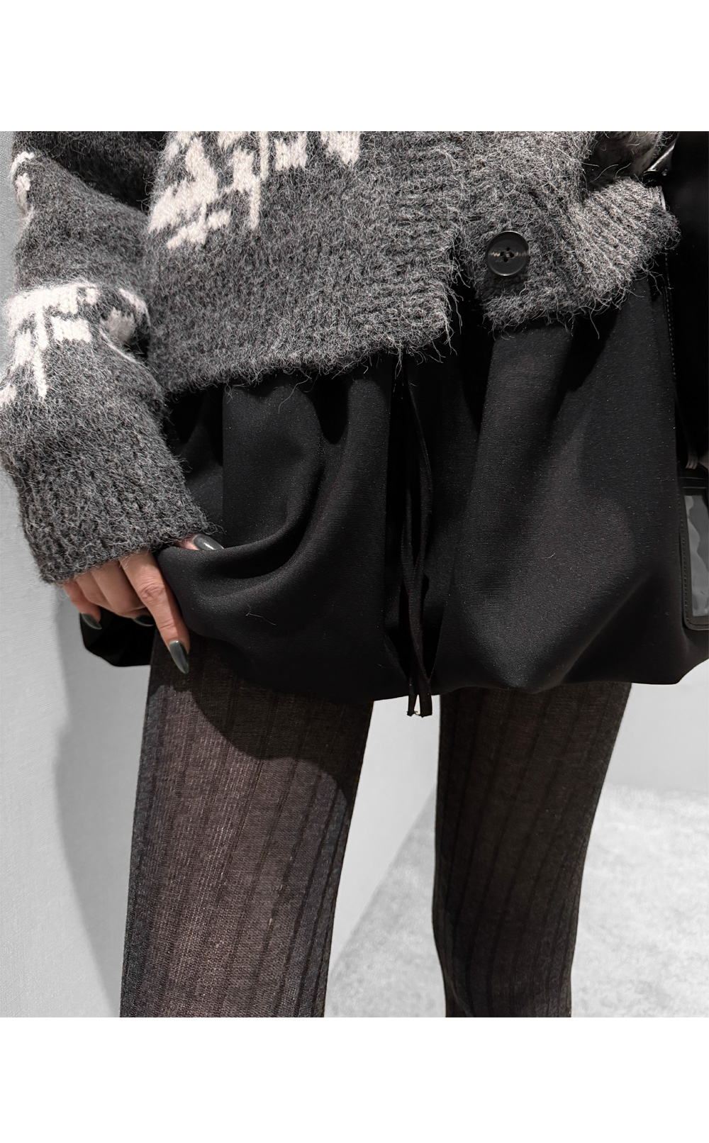 볼륨감 있는 벌룬 실루엣이 매력적인 미니 스커트입니다. 허리 밴딩과 스트링 디테일로 편안한 착용감을 더했으며, 니트부터 티셔츠까지 다양한 상의와 감각적인 스타일링이 가능합니다.