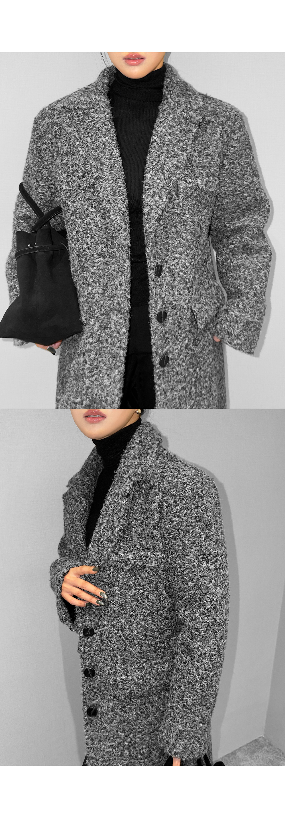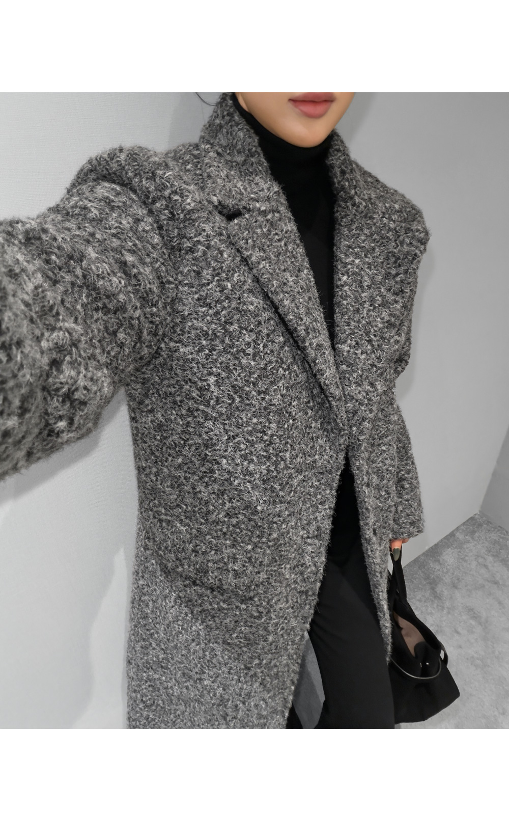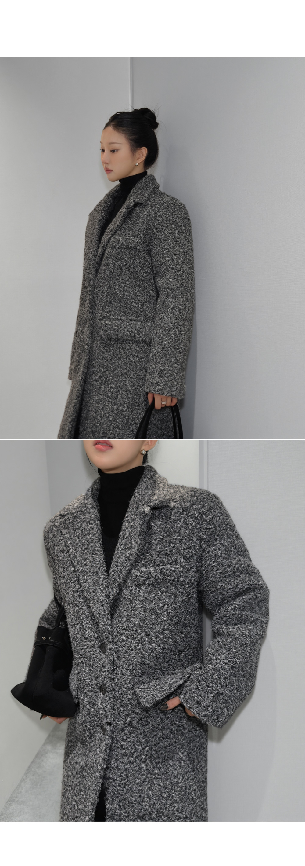 차분한 텍스처와 깊이 있는 컬러감이 어우러진 부클 롱 코트입니다. 표면감이 살아 있는 원단으로 단정하면서도 무게감 있는 분위기를 연출하며, 이너에 따라 데일리부터 포멀한 스타일링까지 자연스럽게 어우러지는 아우터입니다.